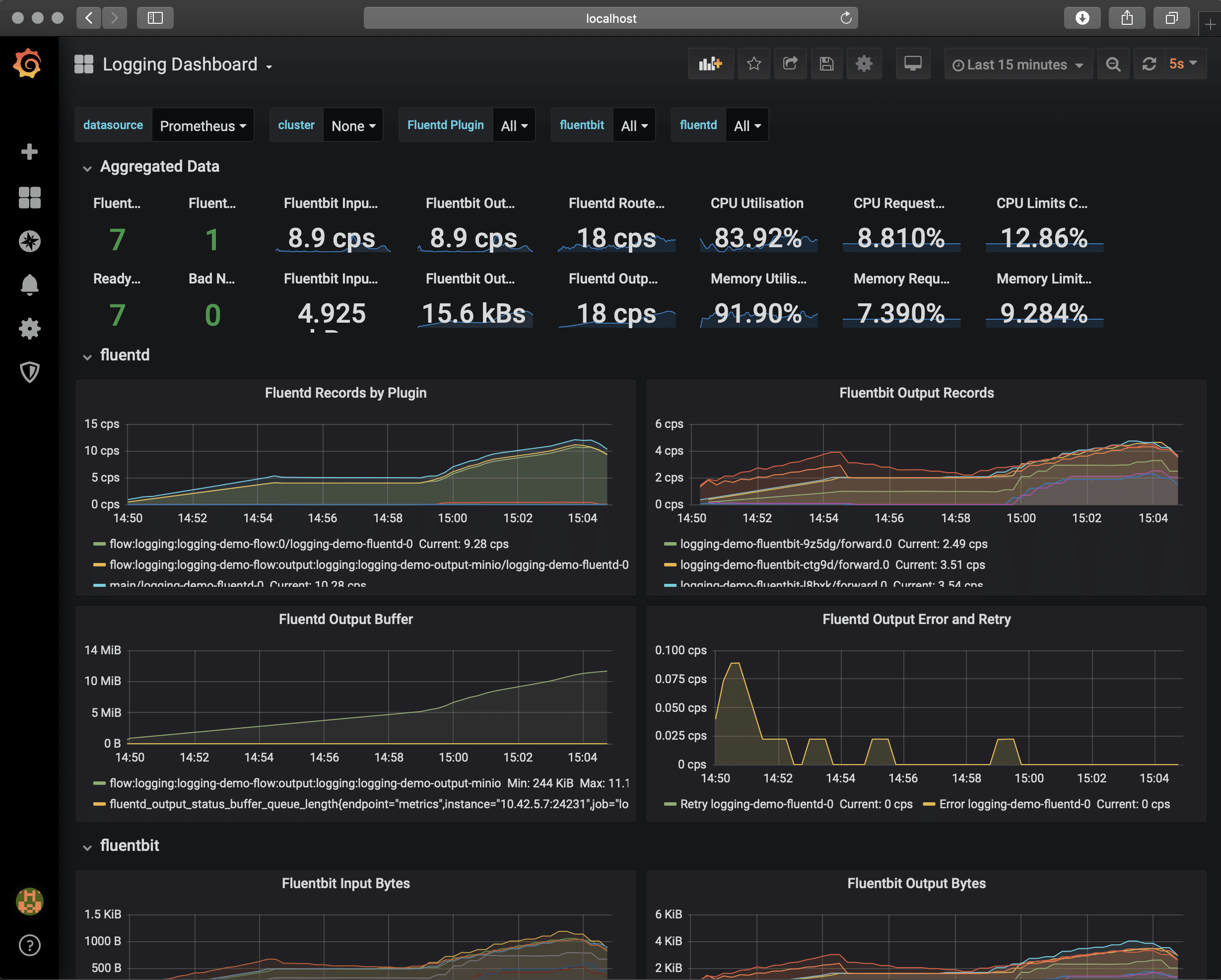 This is a simple dashboard for: https://github.com/banzaicloud/logging-operator utilising Fluent-bit and Fluentd