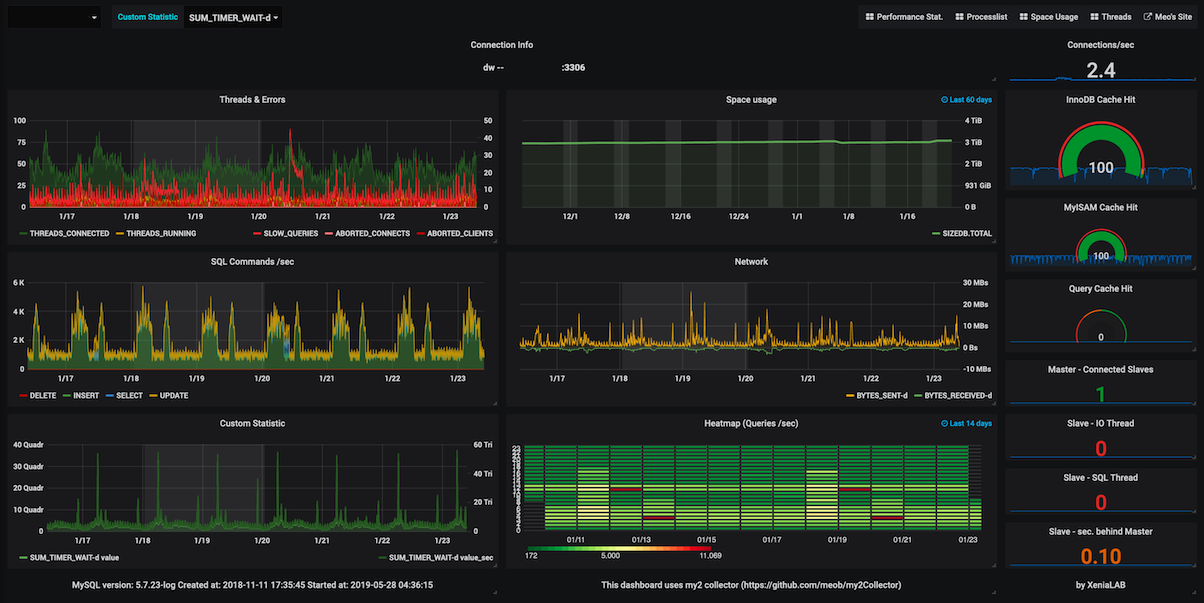 I know... it's just an other MySQL dashboard! But it doesn't need any collection tool since it uses a simple stored routine scheduled by MySQL itself available here: https://github.com/meob/my2Collector