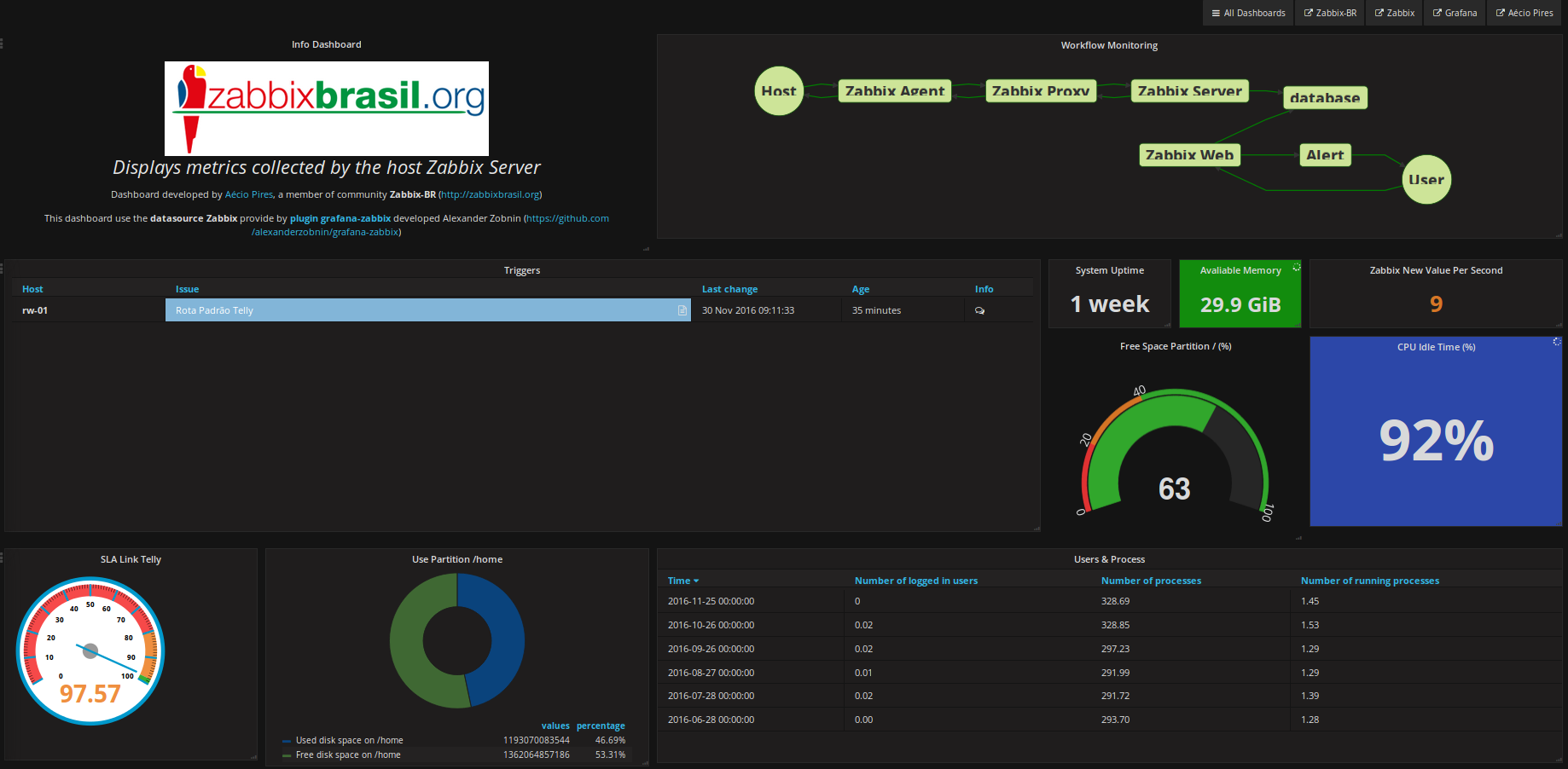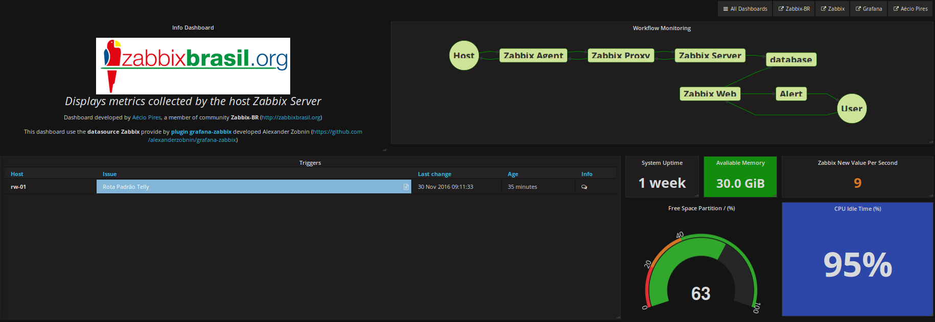 Dashboard developed by Aécio Pires, a member of community Zabbix-BR http://zabbixbrasil.org
