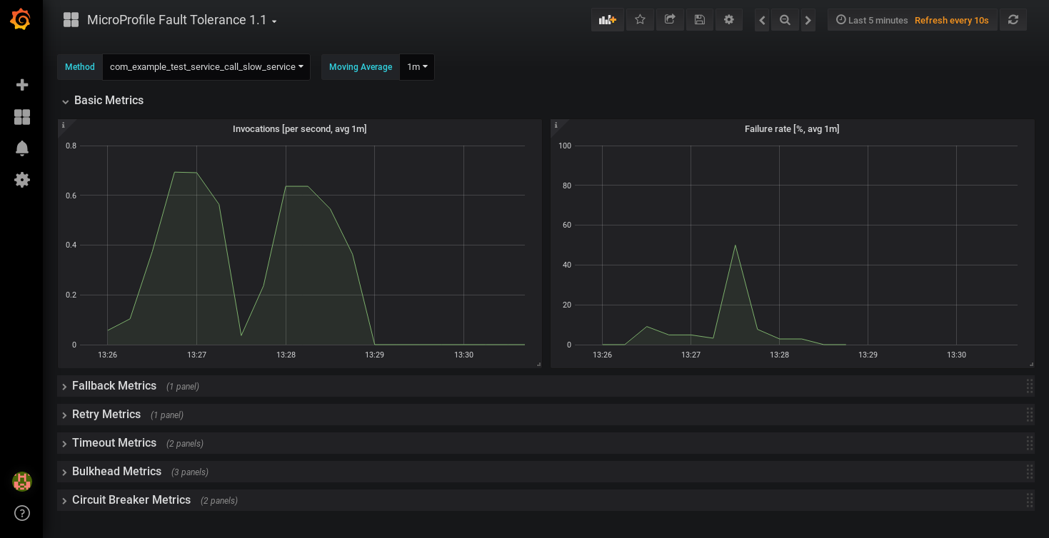 Displays metrics collected by methods annotated with MicroProfile Fault Tolerance annotations