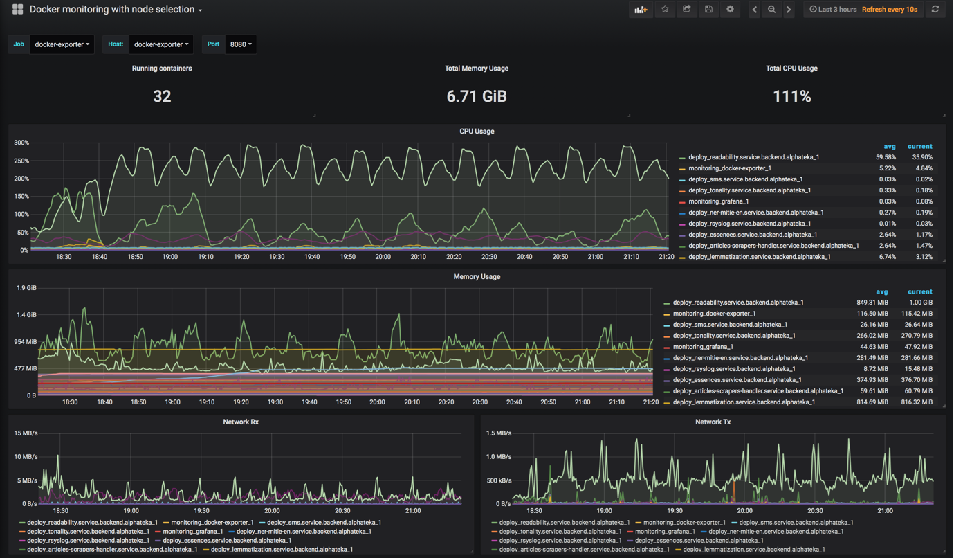 Its an alternative for Docker monitoring dashboard with possibility to select target node/host and port, as well as job.