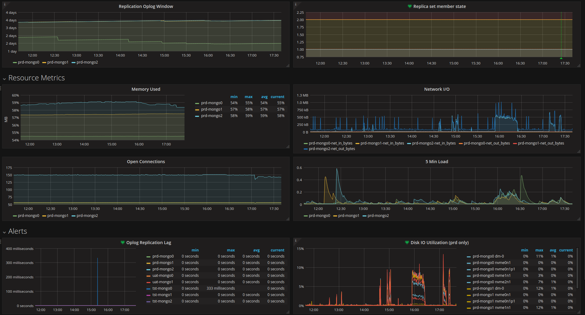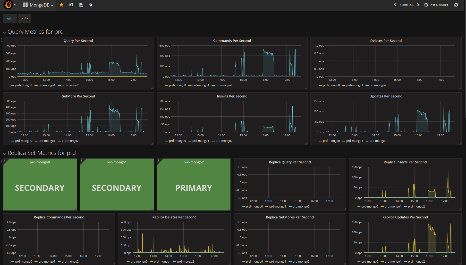 MongoDB dashboard based on graphite data-source and telegraf collector. Focused on replica set. Credit to https://grafana.com/orgs/saada who dashboard was the starting guide to this but using a different datasource: https://grafana.com/dashboards/2583