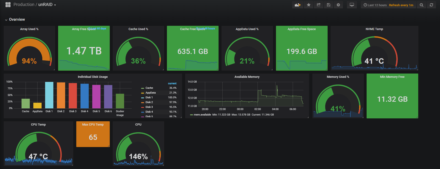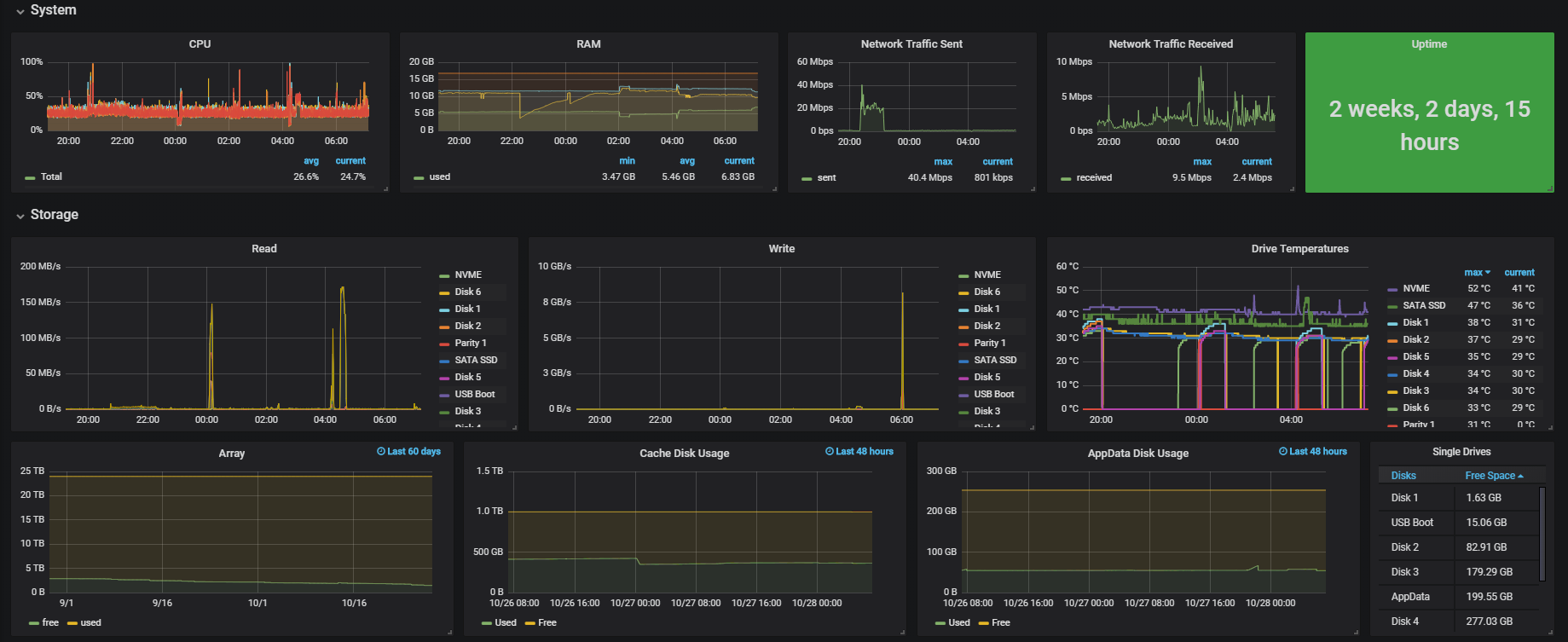 Grafana Dashboard for unRAID.