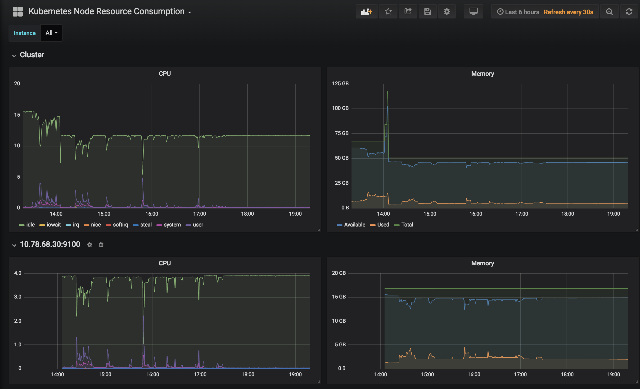 Simple and straight forward Resource consumption charts for an entire Kubernetes cluster and split per cluster node