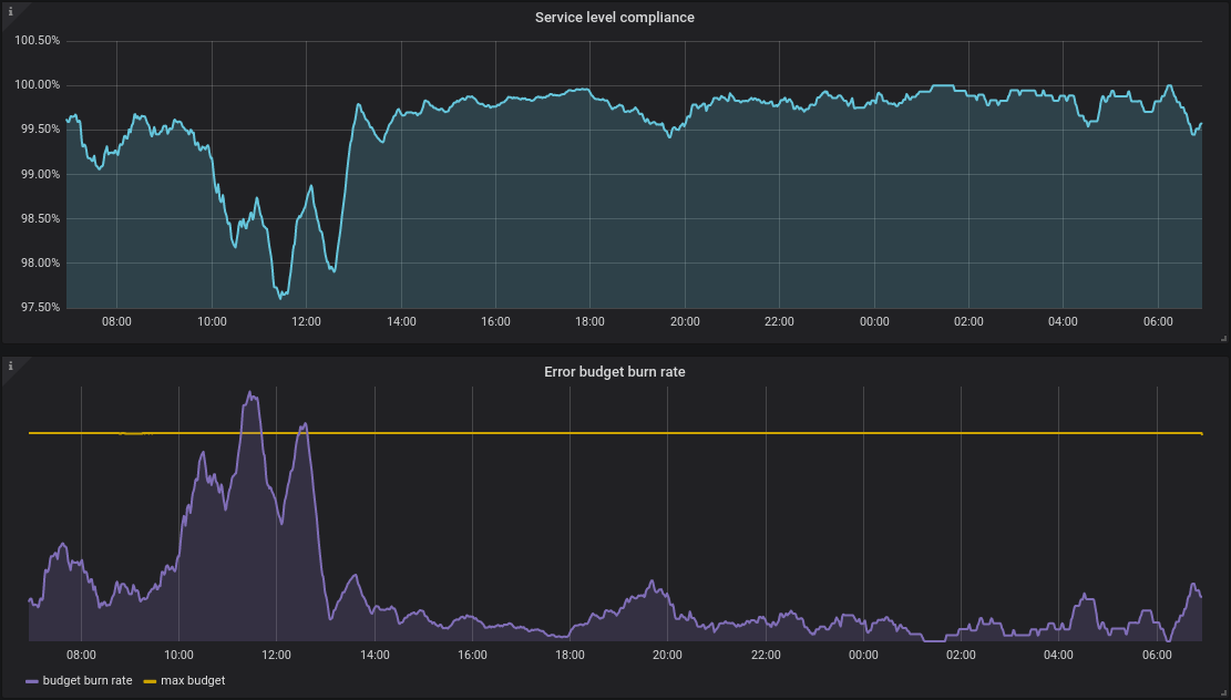 - Show the error budget burning rate with it's max burnning rate limit that should not be bypassed