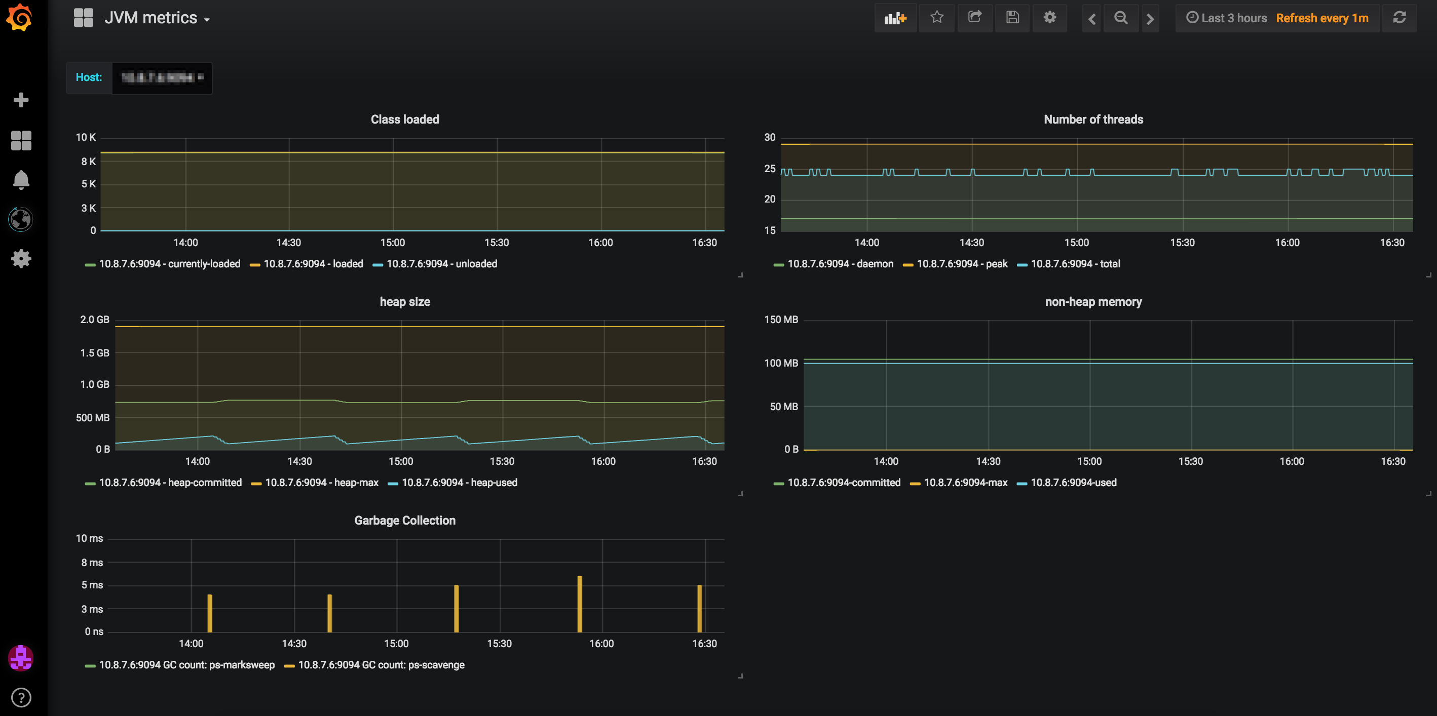 Displays typical JVM metrics: