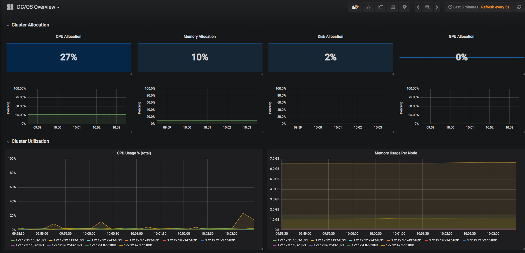 Example of an DC/OS Overview dashboard for DC/OS 1.12