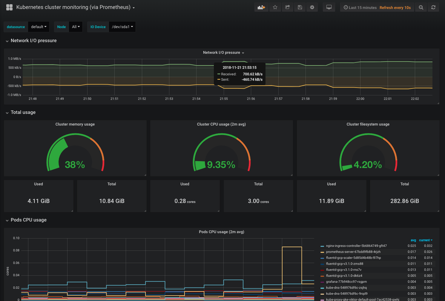 Kubernetes cluster monitoring (via Prometheus)