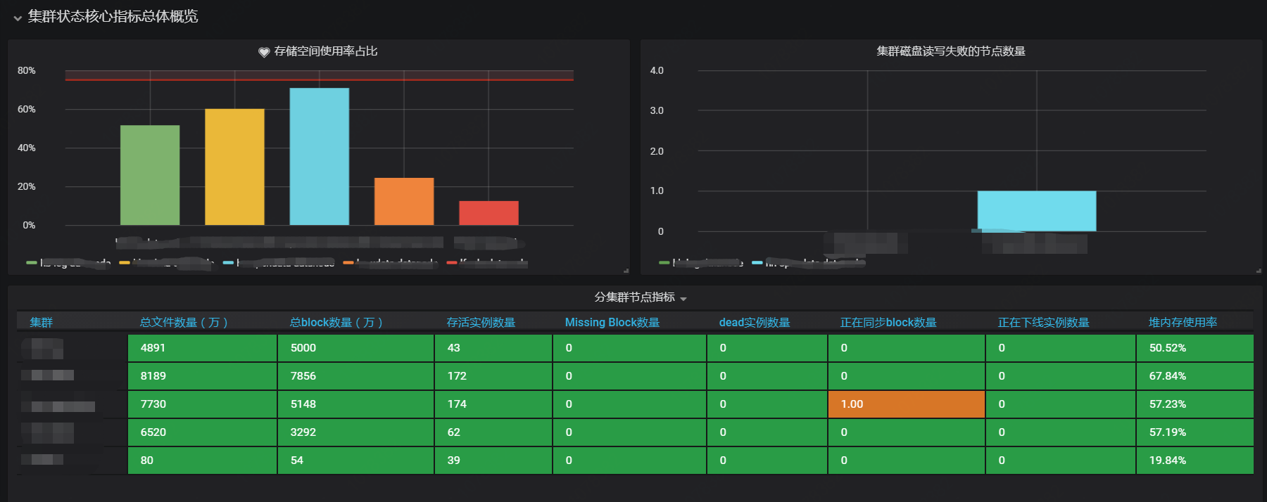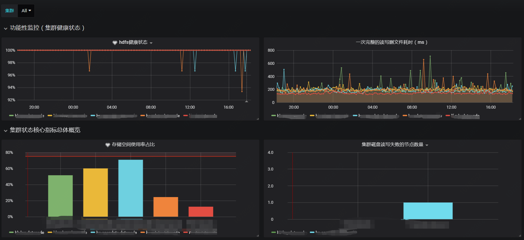 Hadoop-hdfs巡检仪表盘,分为功能监控和核心指标监控,包含容量,流量,错误,延迟等核心指标,满足日常巡检需求
