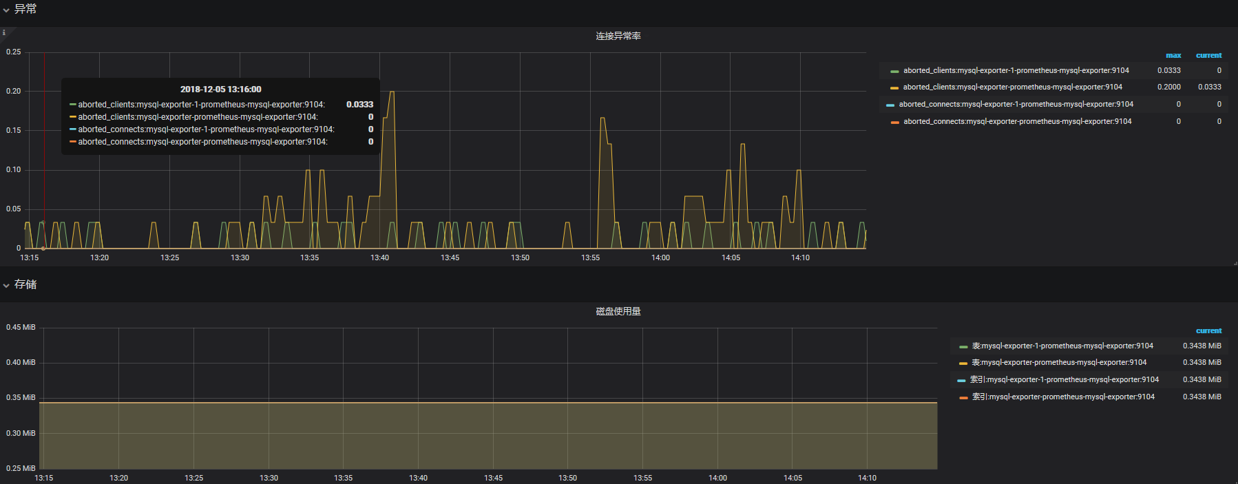 The MySQL Monitor dashboard uses the prometheus data source to create a Grafana dashboard with the graph and singlestat panels.