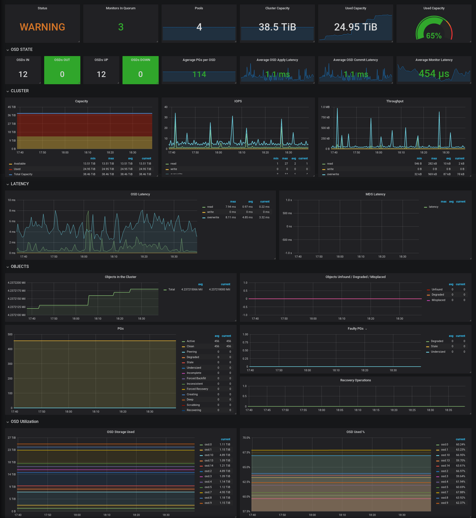 - OSDs IN/OUT/UP/DOWN