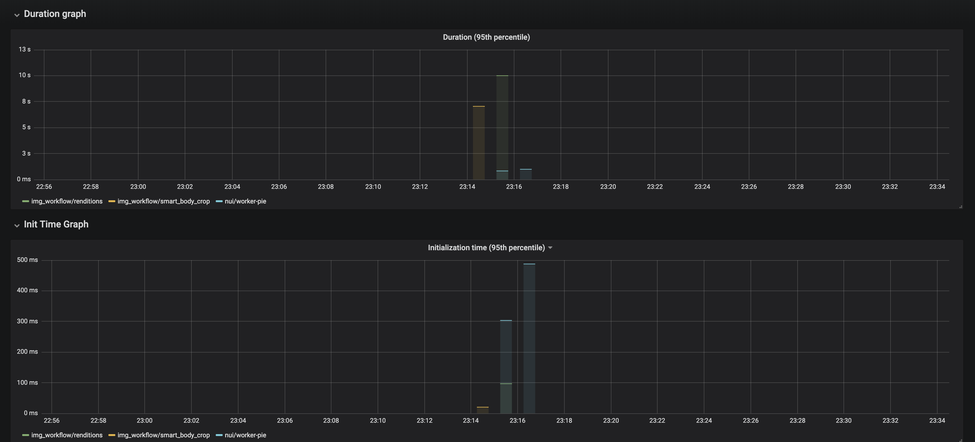 The Openwhisk - Action Performance Metrics dashboard uses the prometheus data source to create a Grafana dashboard with the graph and singlestat panels.