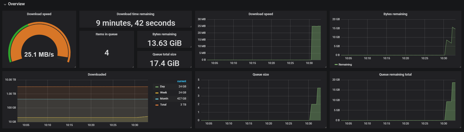 The dashboard is based on the data that is supplied by the exporter that msroest created, source code can be found at: https://github.com/msroest/sabnzbd_exporter
