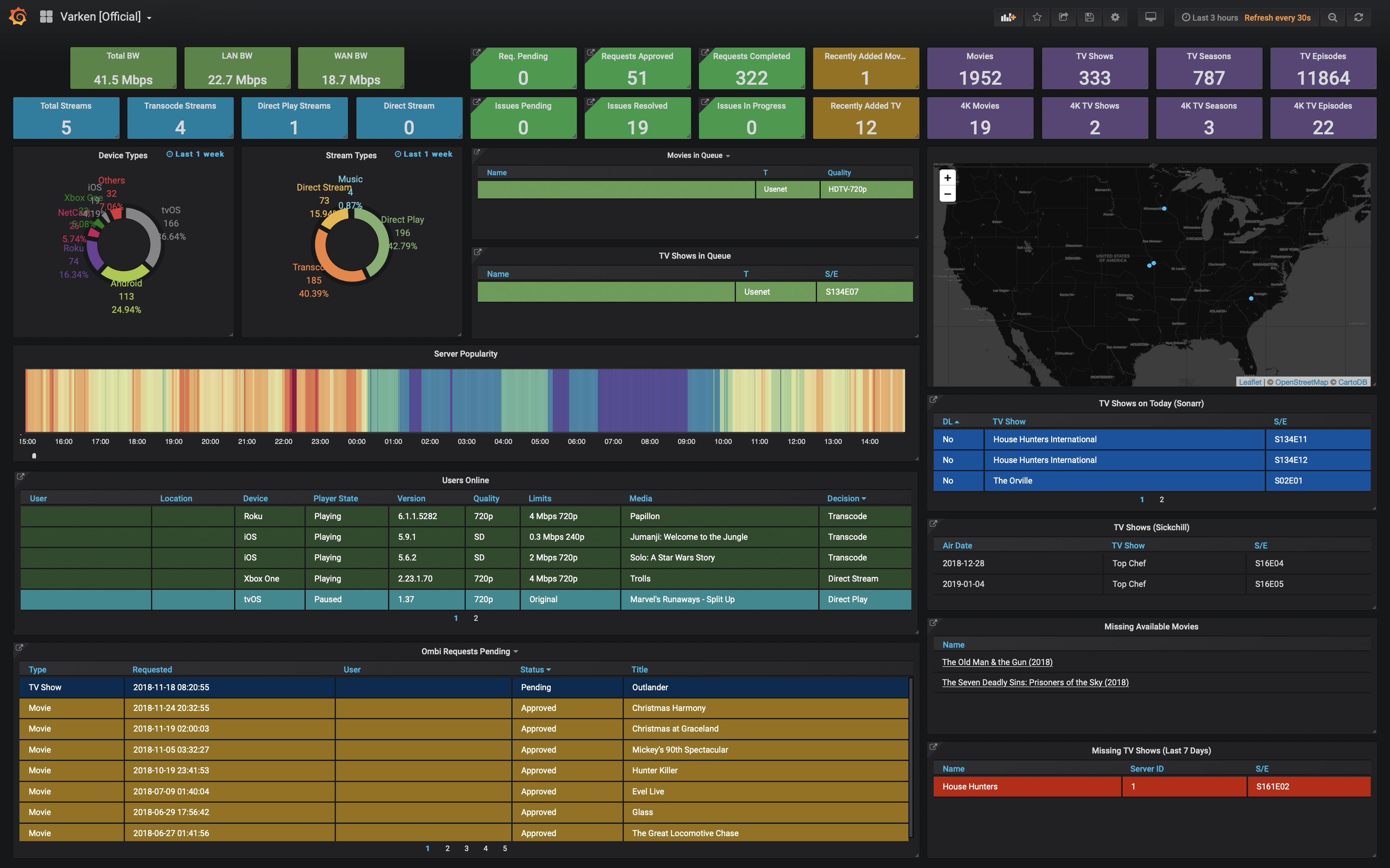 Varken is a standalone command-line utility to aggregate data from the Plex ecosystem into InfluxDB. Examples use Grafana for a frontend Requirements: