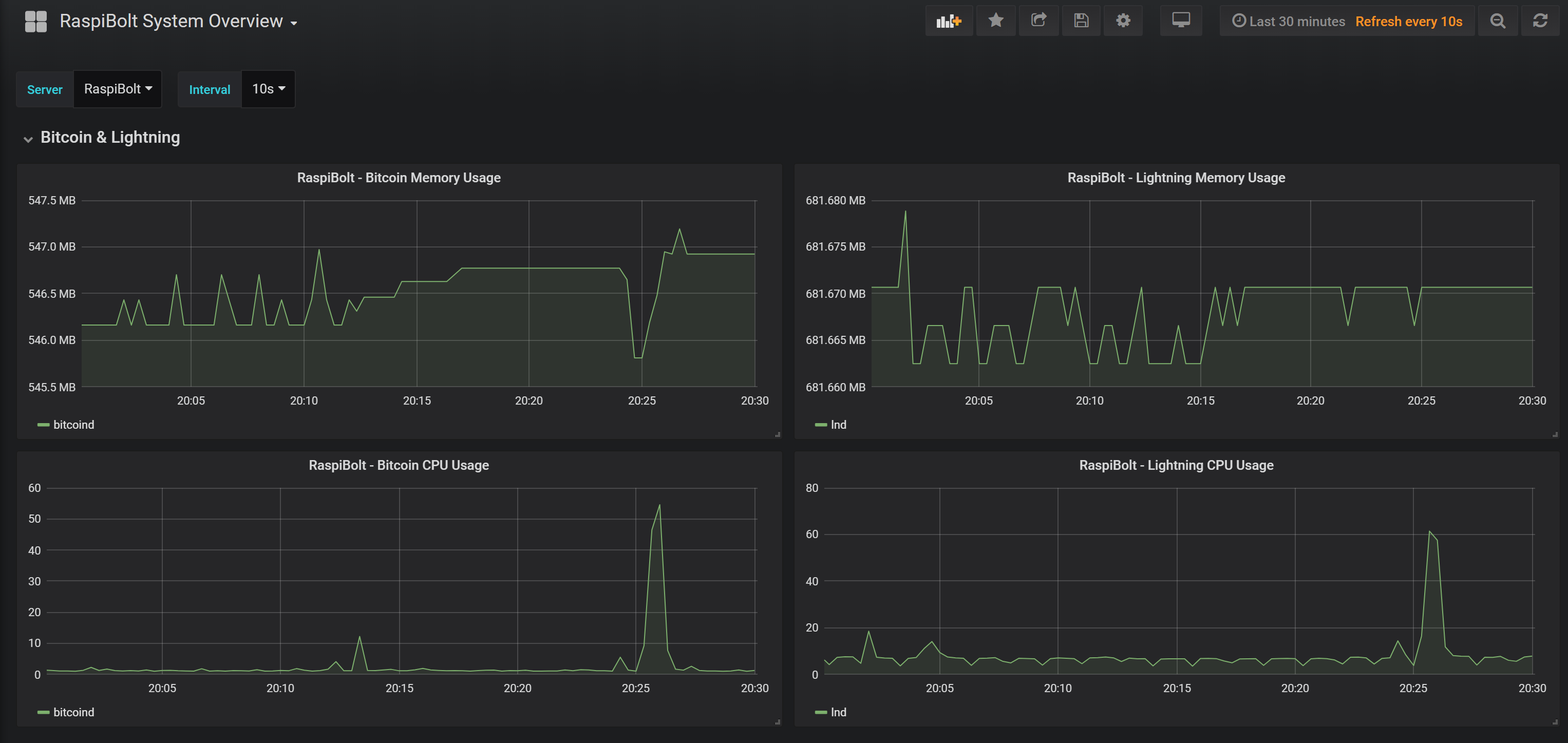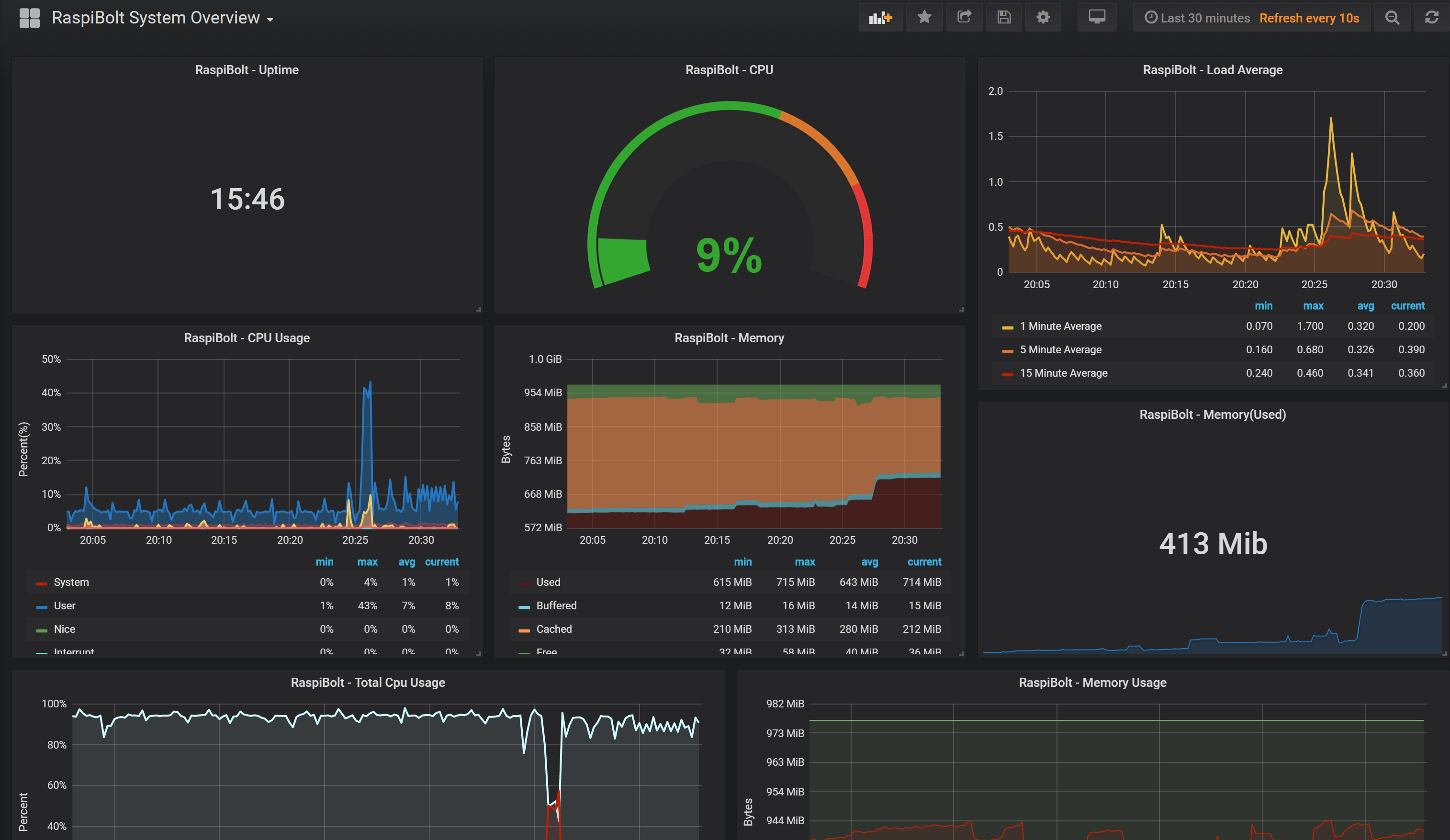 This Dashboard provides a general overview of a RaspiBolt system, with templating to host and Interval