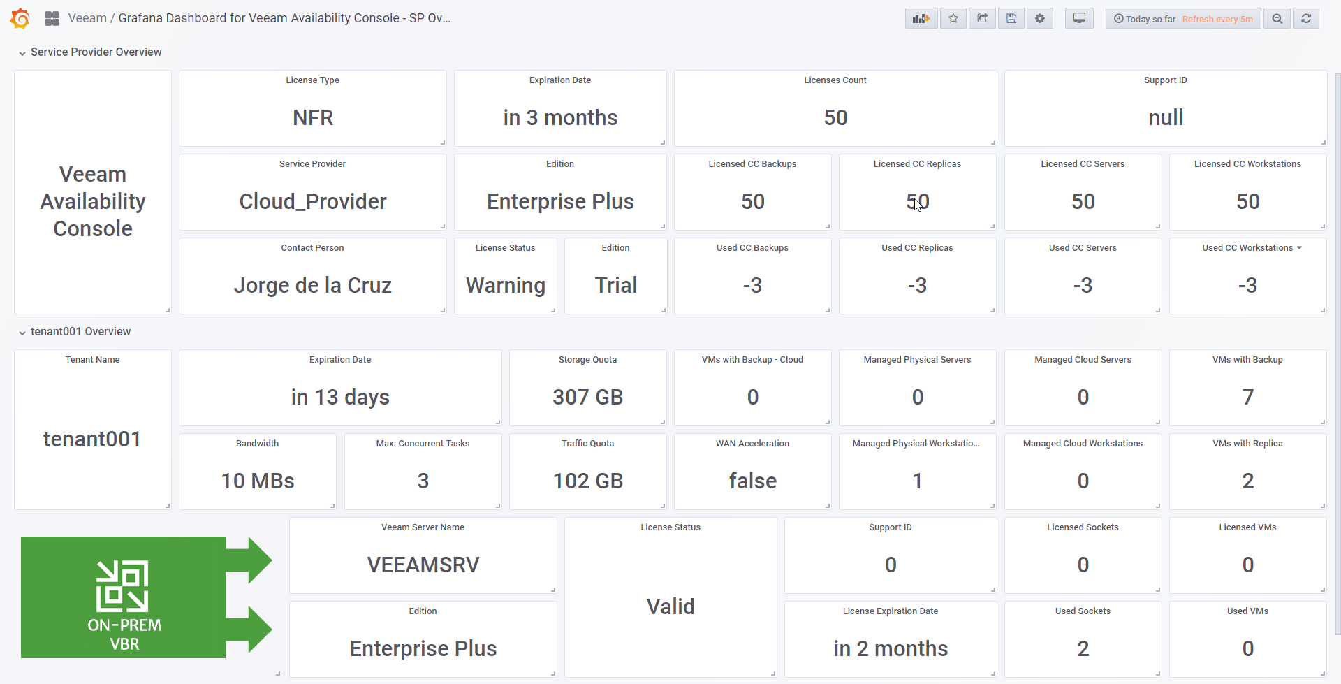 Grafana Dashboard for Veeam Availability Console - SP Overview