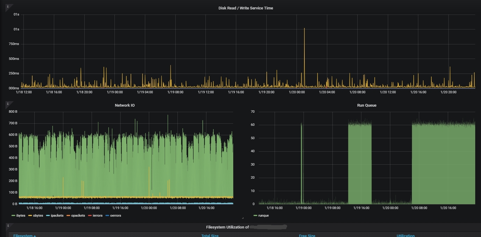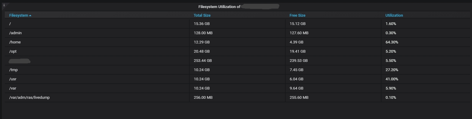 This dashboard is created to provide front end for njmon statistics collected in AIX servers. This dashboard provides a drop drown menu where user can select individual server to display statistics of selected host. Influxdb is used as the data source for this dashboard. Feel free to modify this dashboard. Measurements displayed includes ‘LPAR config’, ’CPU utilization’, ’Memory utilization’, ’Paging utilization’, ’Network IO’, ’Runqueue’ and ’Filesystem utilization’. *more tabs to be added in future. *njmon logo belongs to Mr.Nmon.