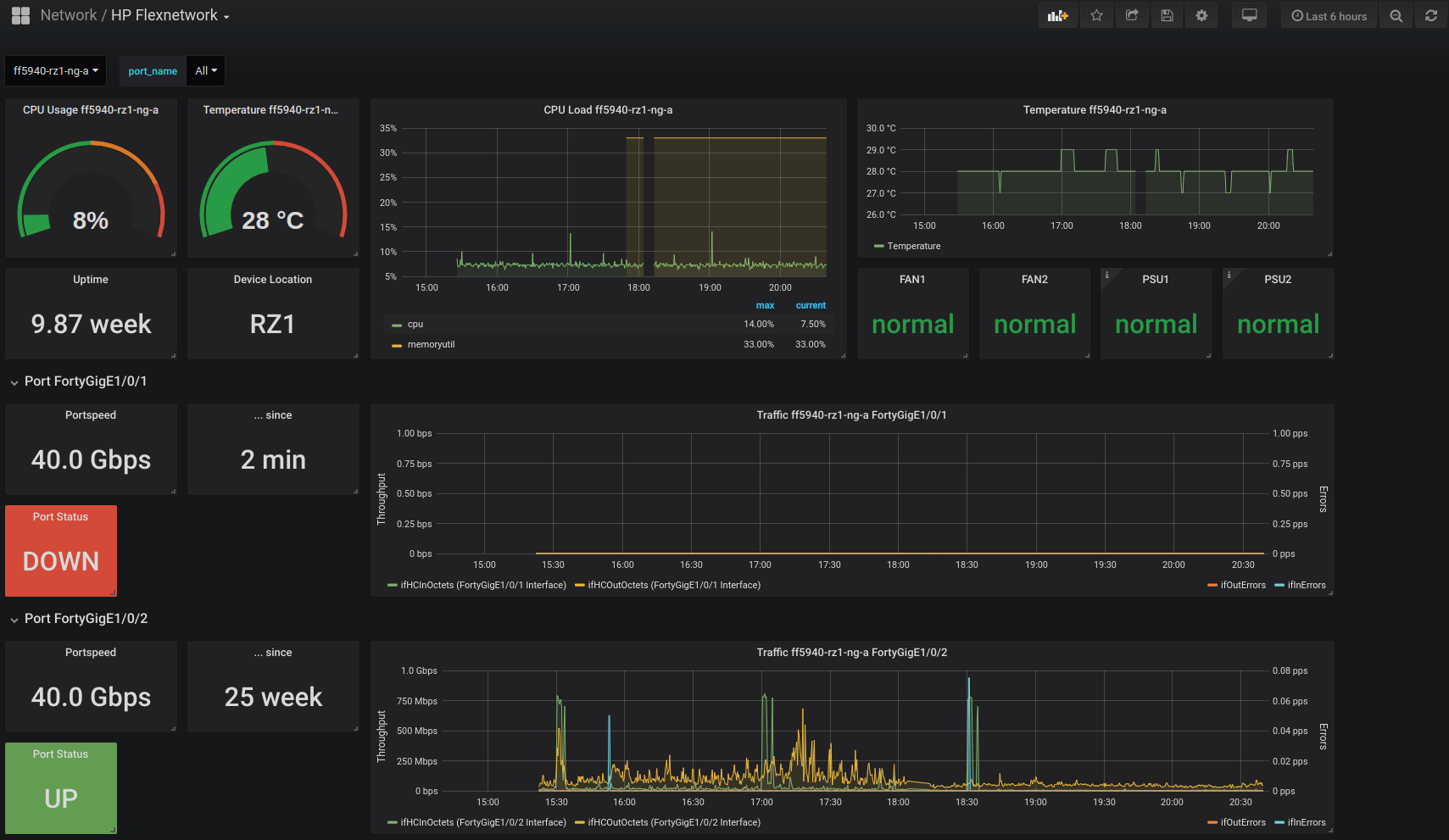 Dashboard for HP Flexnetwork / Flexfabric Network gear with Comware OS. Telegraf Config included.