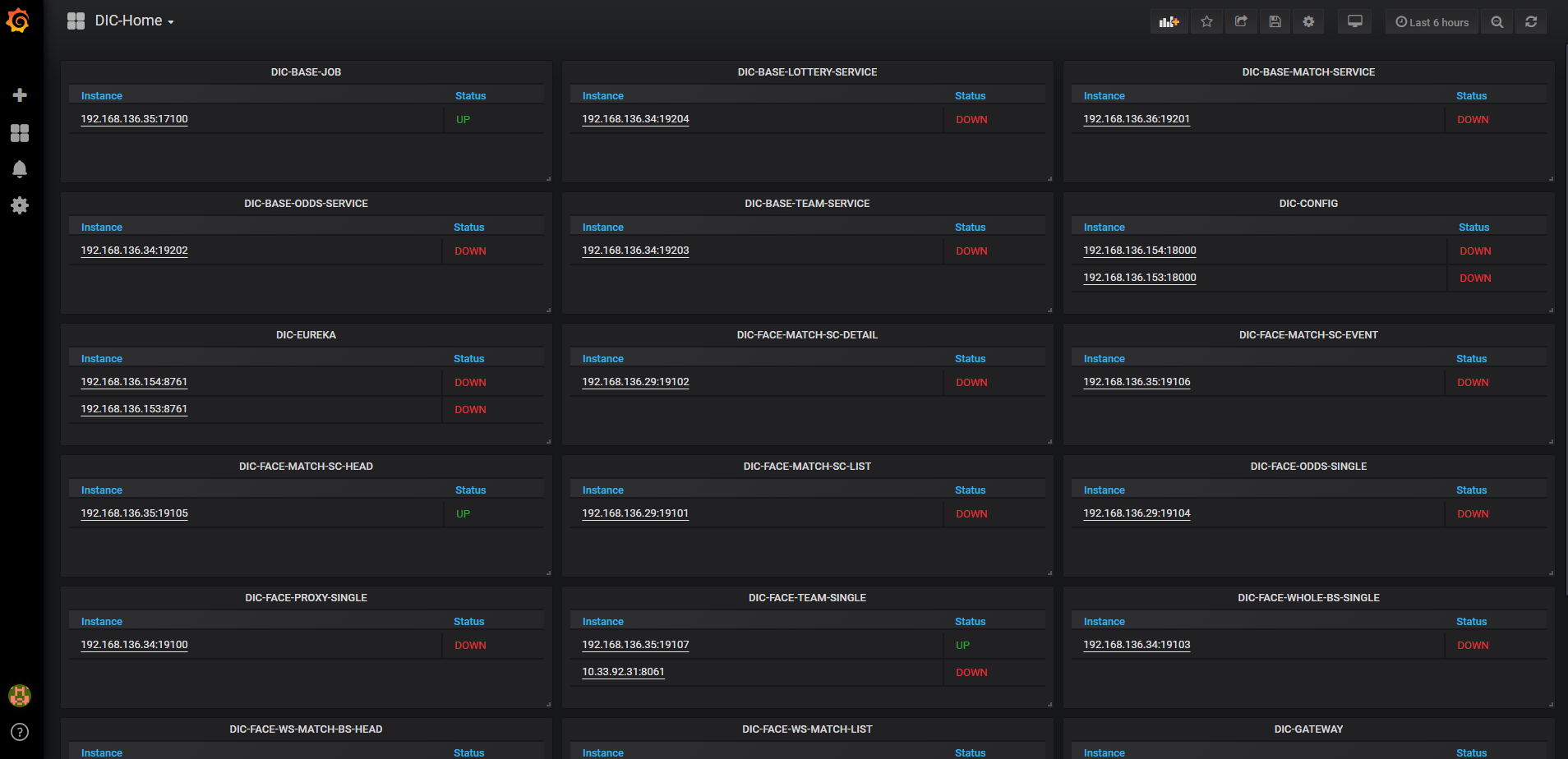 The DIC-Home dashboard uses the prometheus data source to create a Grafana dashboard with the table panel.