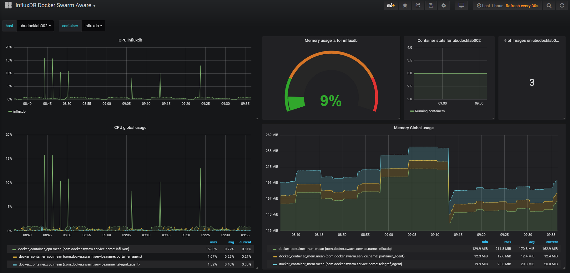This dashboard is almost completely the work of: https://grafana.com/dashboards/1150 InfluxDB Docker by Thomas Cheronneau
