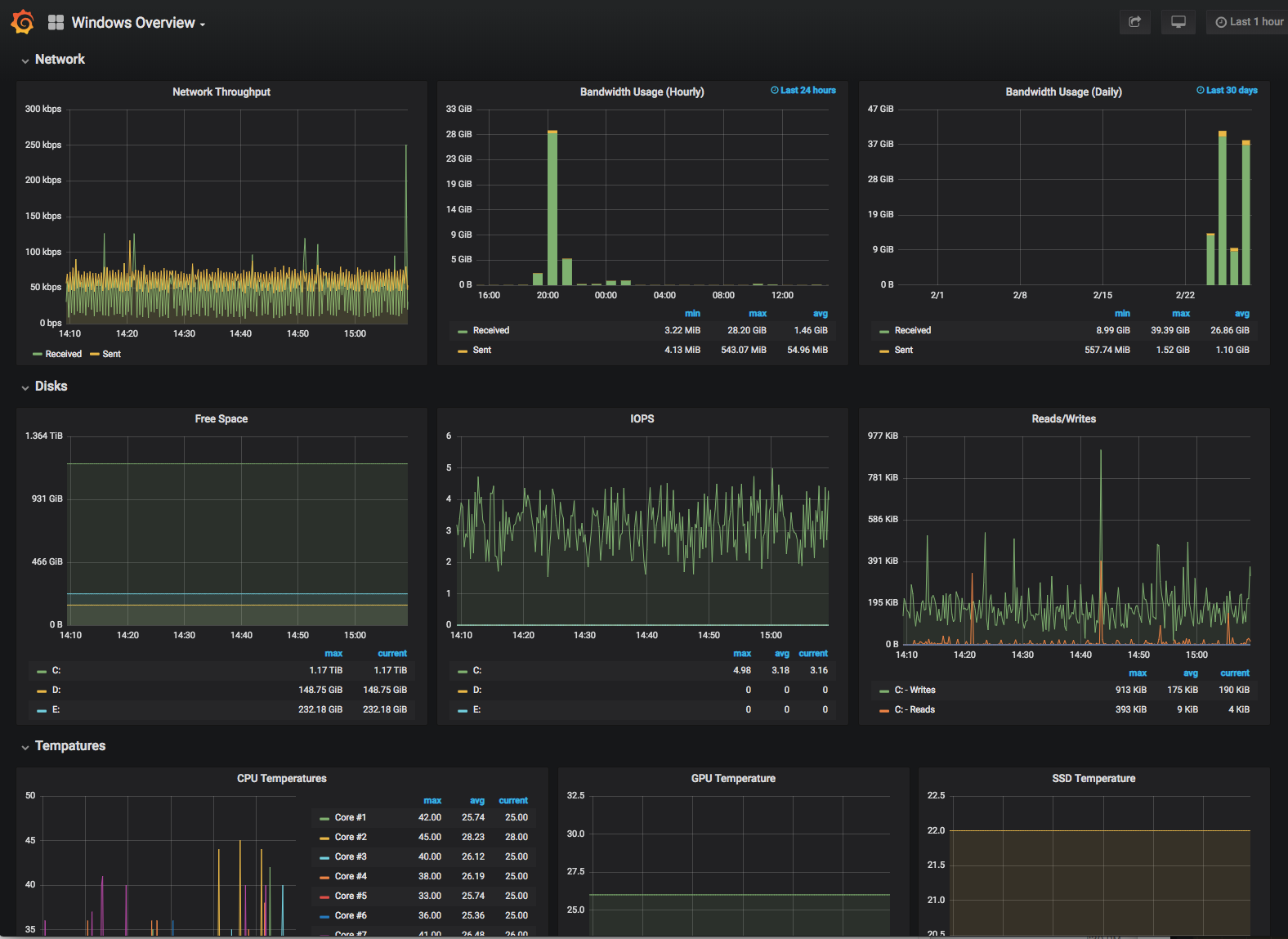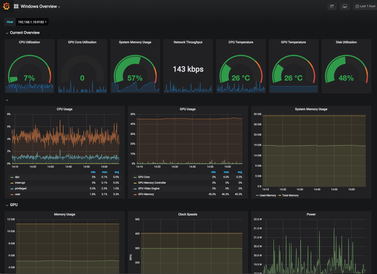 A dashboard for monitoring a Windows Desktop/Gaming PC. Using Prometheus, wmi_exporter, and OhmGraphite.