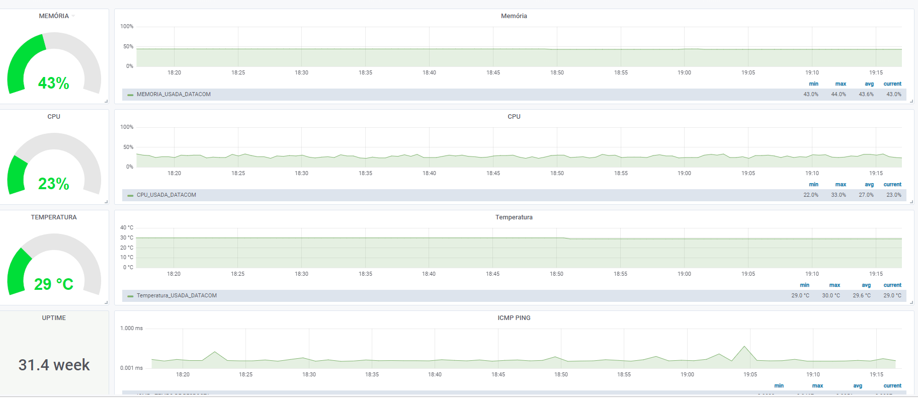 The DASHBOARD CORE dashboard uses the alexanderzobnin-zabbix-datasource data source to create a Grafana dashboard with the graph and singlestat panels.