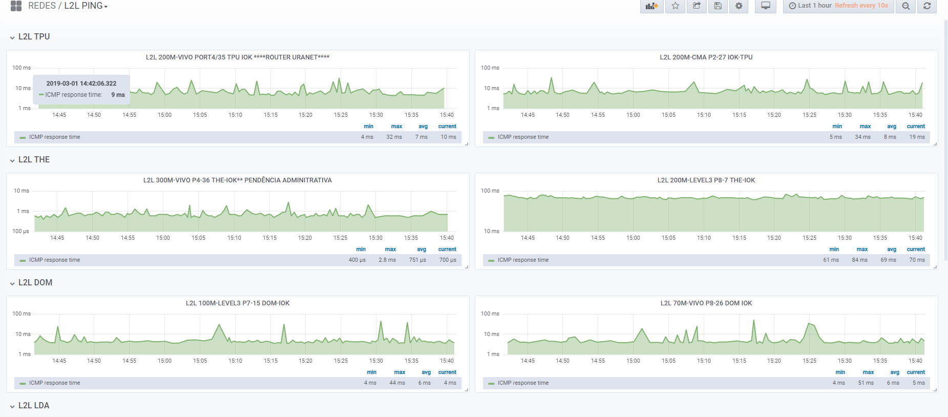 The L2L PING dashboard uses the alexanderzobnin-zabbix-datasource data source to create a Grafana dashboard with the graph panel.