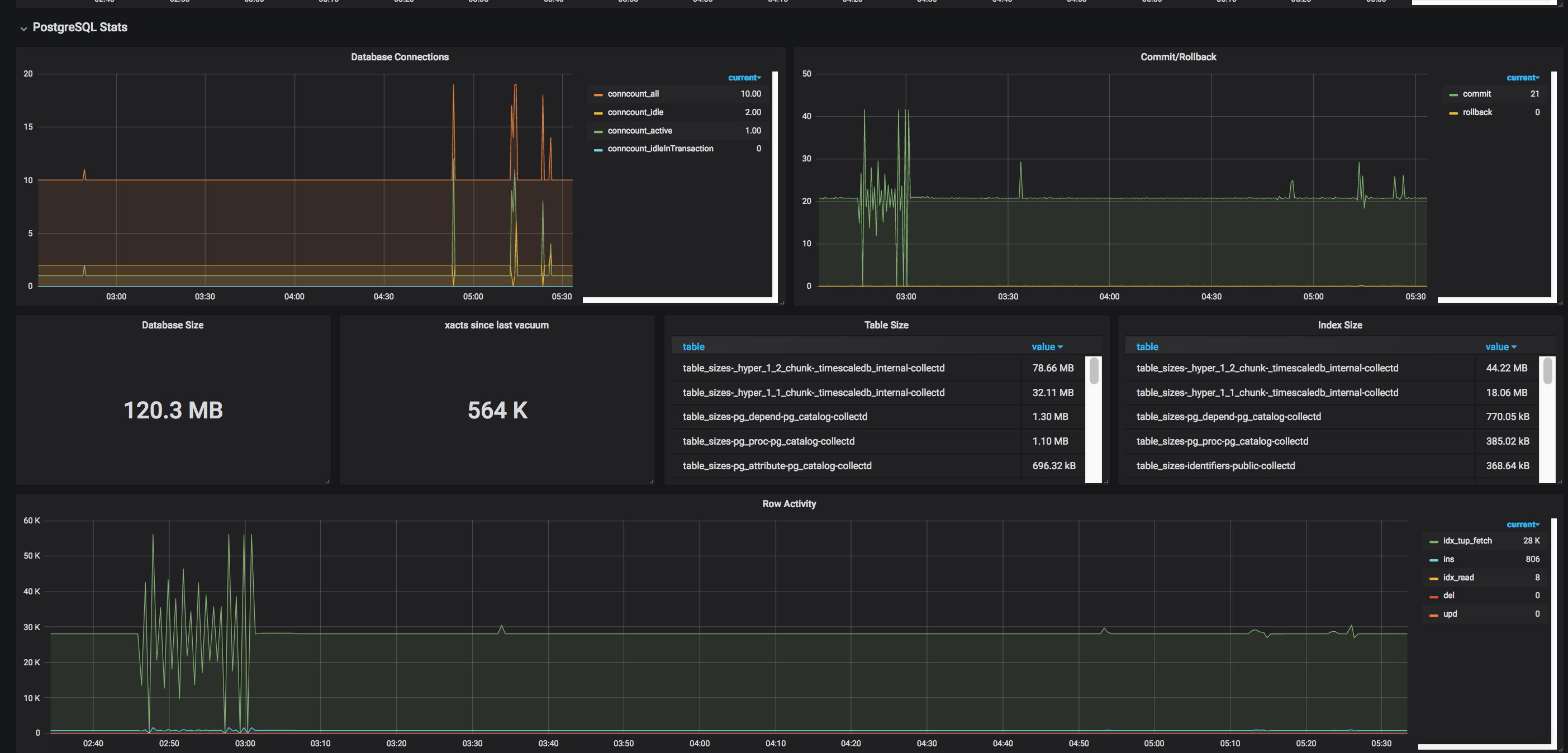 A basic dashboard for monitoring PostgreSQL database clusters using collectd v5+, TimescaleDB/PostgreSQL v10+ and Grafana v6+