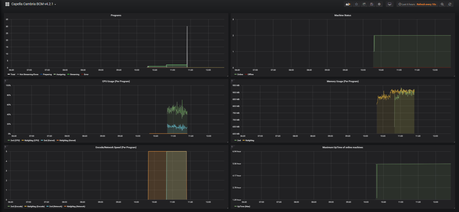 Dashboard for Cambria Live Broadcast Manager, an enterprise-level live streaming application for Windows.