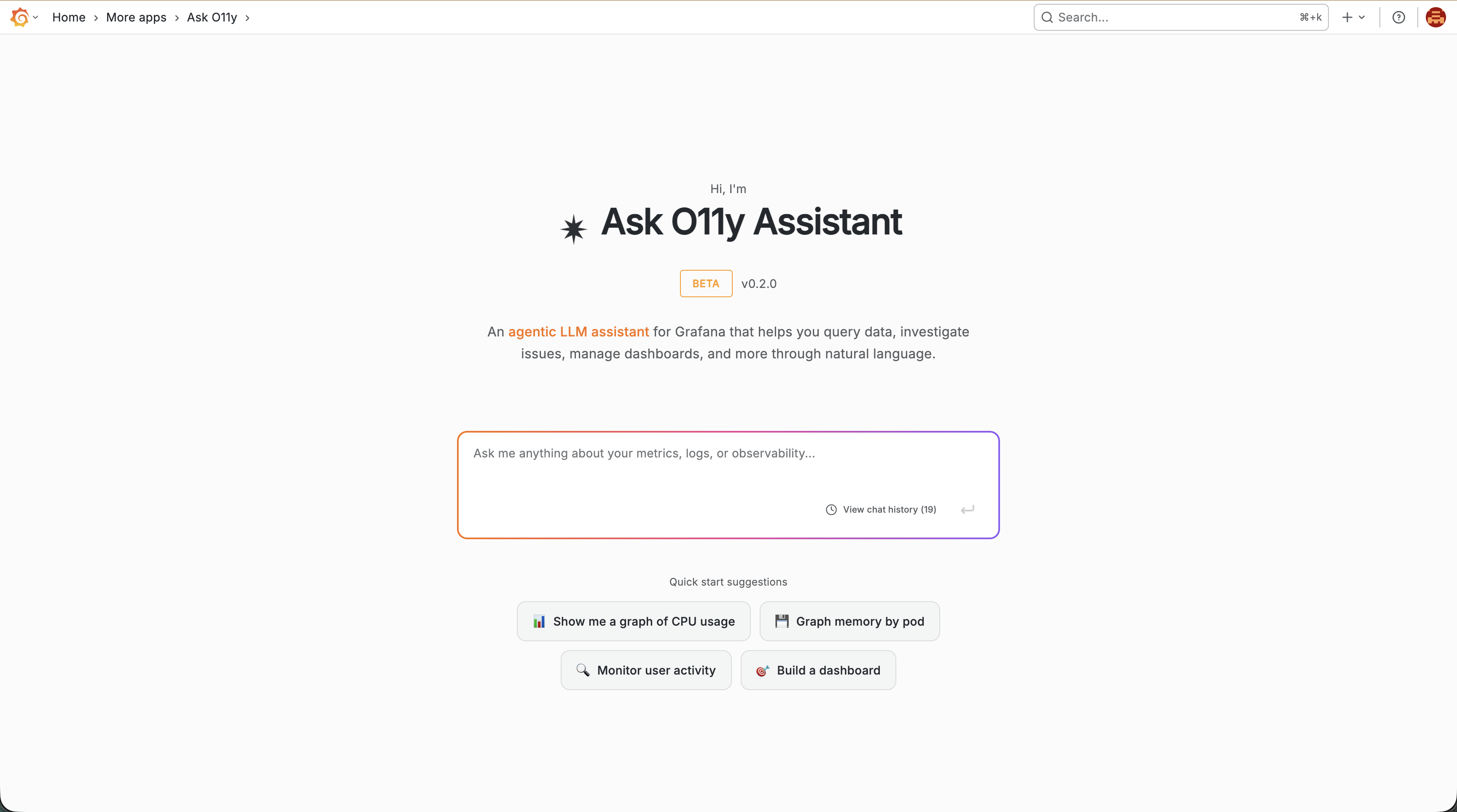 - Navigate to Apps → Ask O11y