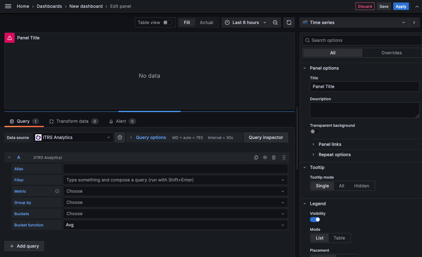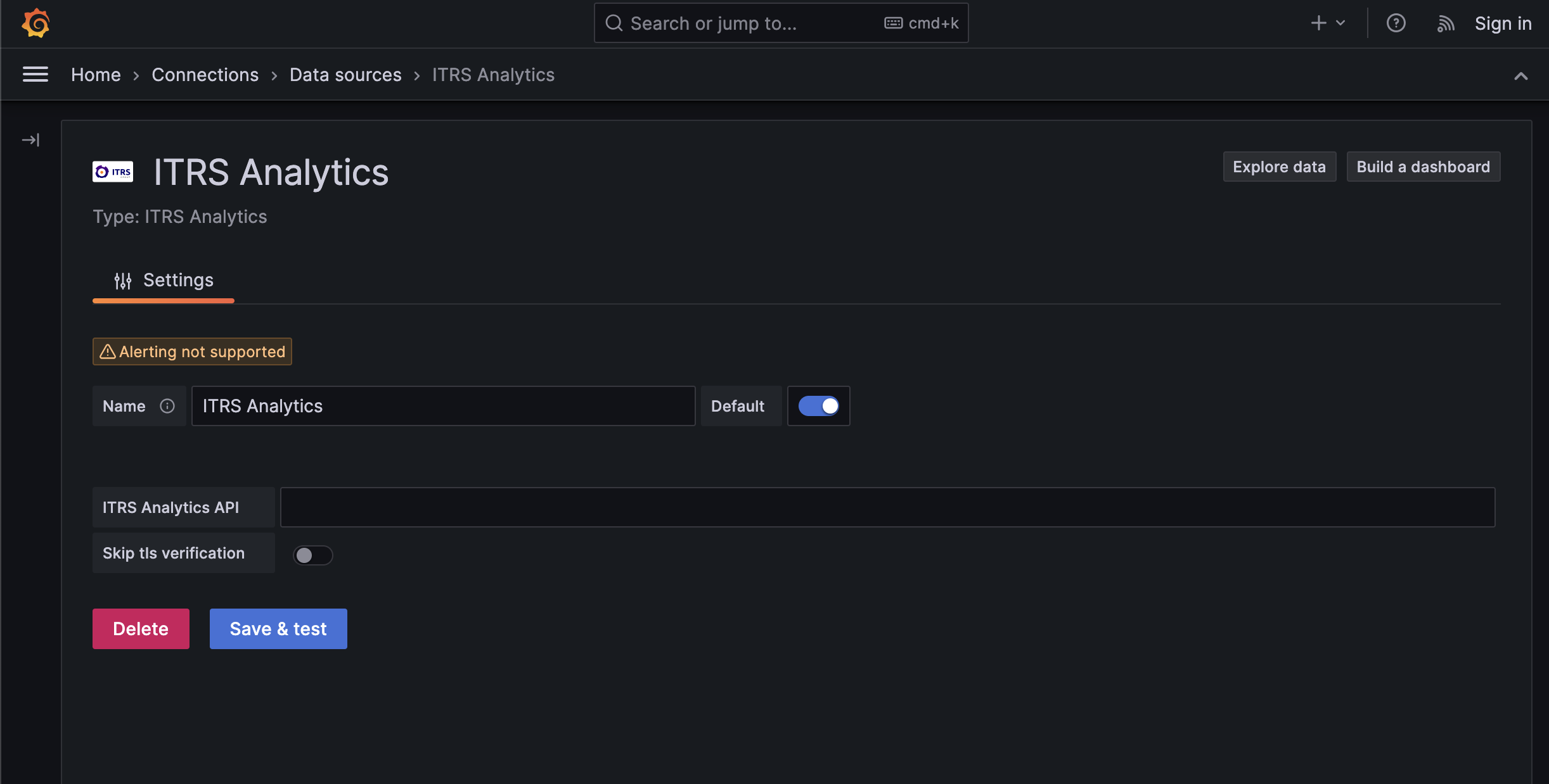 Click on "Add data source" and look for "ITRS Analytics" one and select it