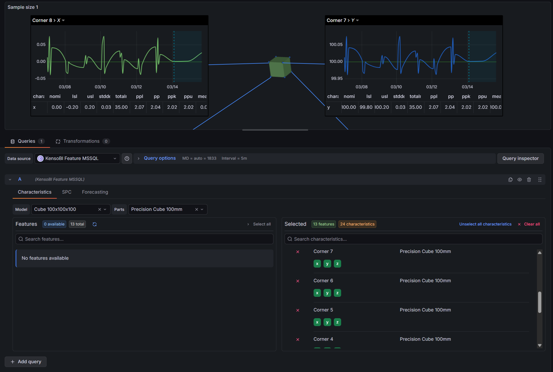 SPC Characteristic Datasource is part of a growing family of Statistical Process Control plugins for Grafana by Kenso Software:
