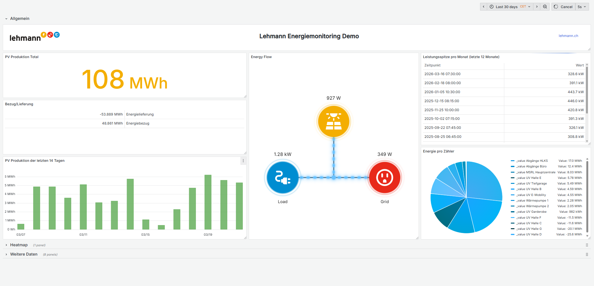 Solar Flow is an animated visualization of solar panel energy flow, designed as a Grafana panel plugin. It shows real-time energy movement between PV, Grid, Load, and up to 3 additional sources (battery, wallbox, etc.) with smooth particle-style animations.
