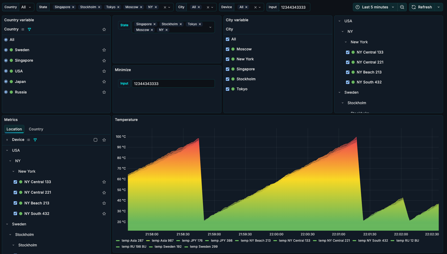 Business Variable transforms how you interact with Grafana dashboard variables. Place it anywhere on your dashboard and choose from multiple layouts, including an advanced TreeView option, to simplify filtering and boost usability.