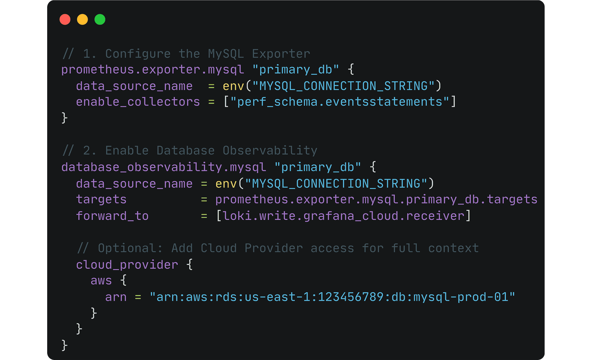 • オープンツールを使用して迅速に展開する Alloyの組み込みオープンソースのMySQLおよびPostgreSQLコレクションコンポーネントを使用します。データベースサーバーに専用エージェントを必要としません。