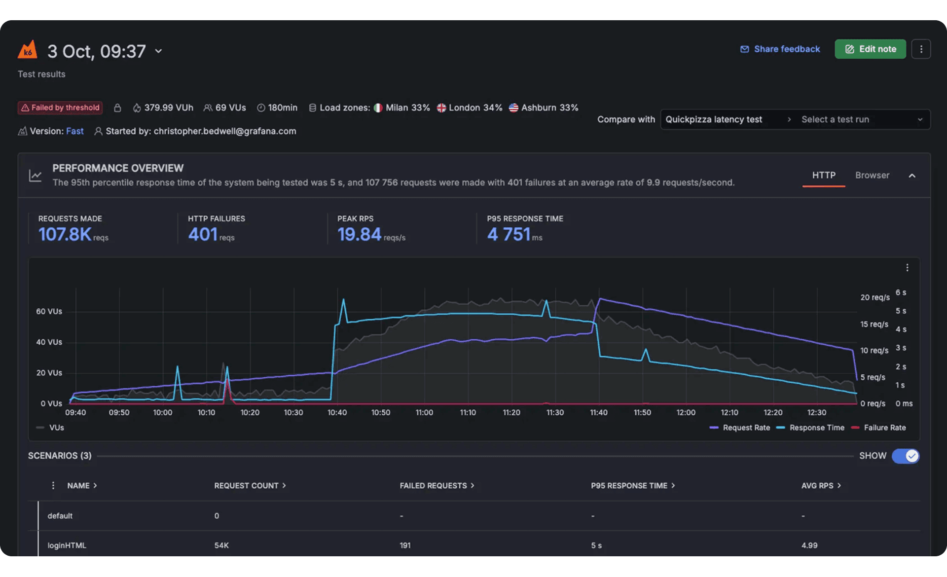 Grafana Cloud helps SRE and platform teams build reliable, high-performing systems by combining performance testing, synthetic monitoring, application observability, SLOs, and incident response in one platform.
