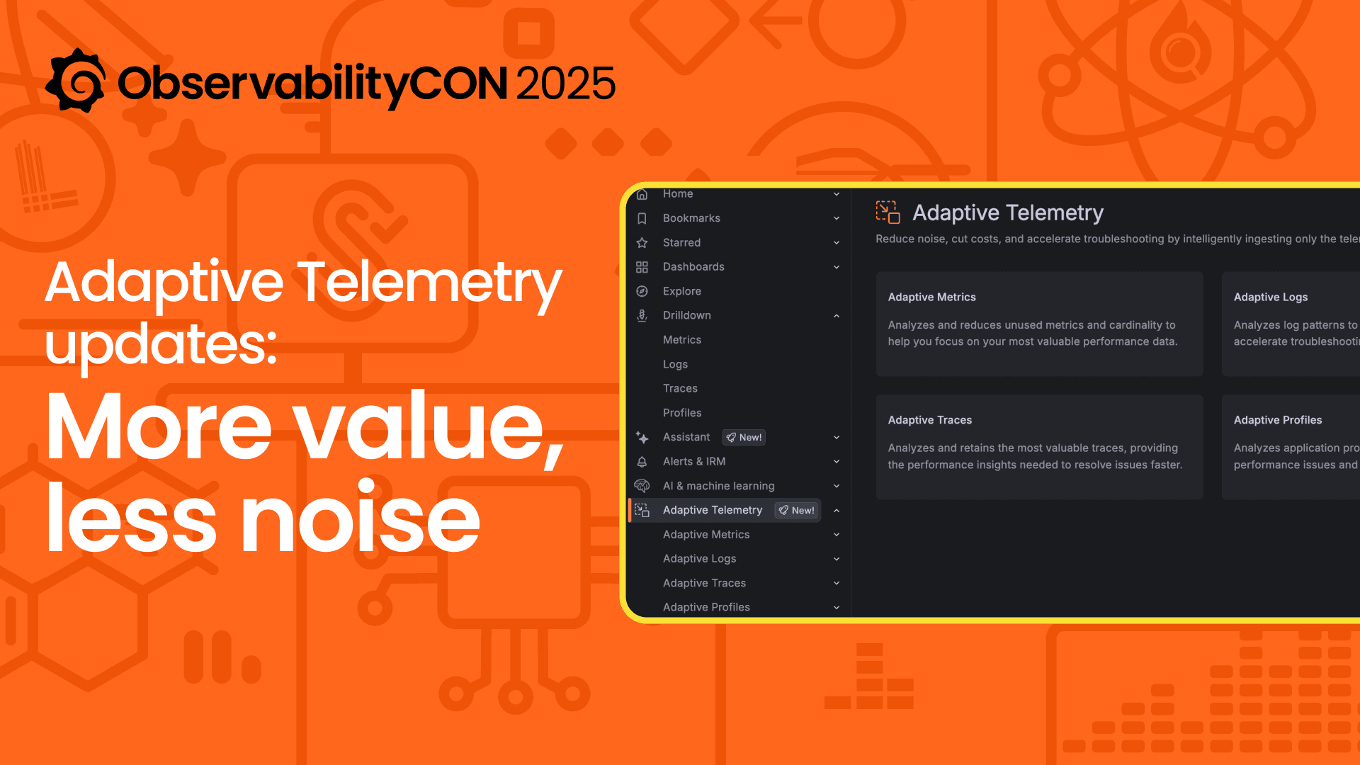 • Adaptive Metrics: Reduces high-cardinality and low-value metrics so engineers keep the trends that matter without the volume that doesn’t