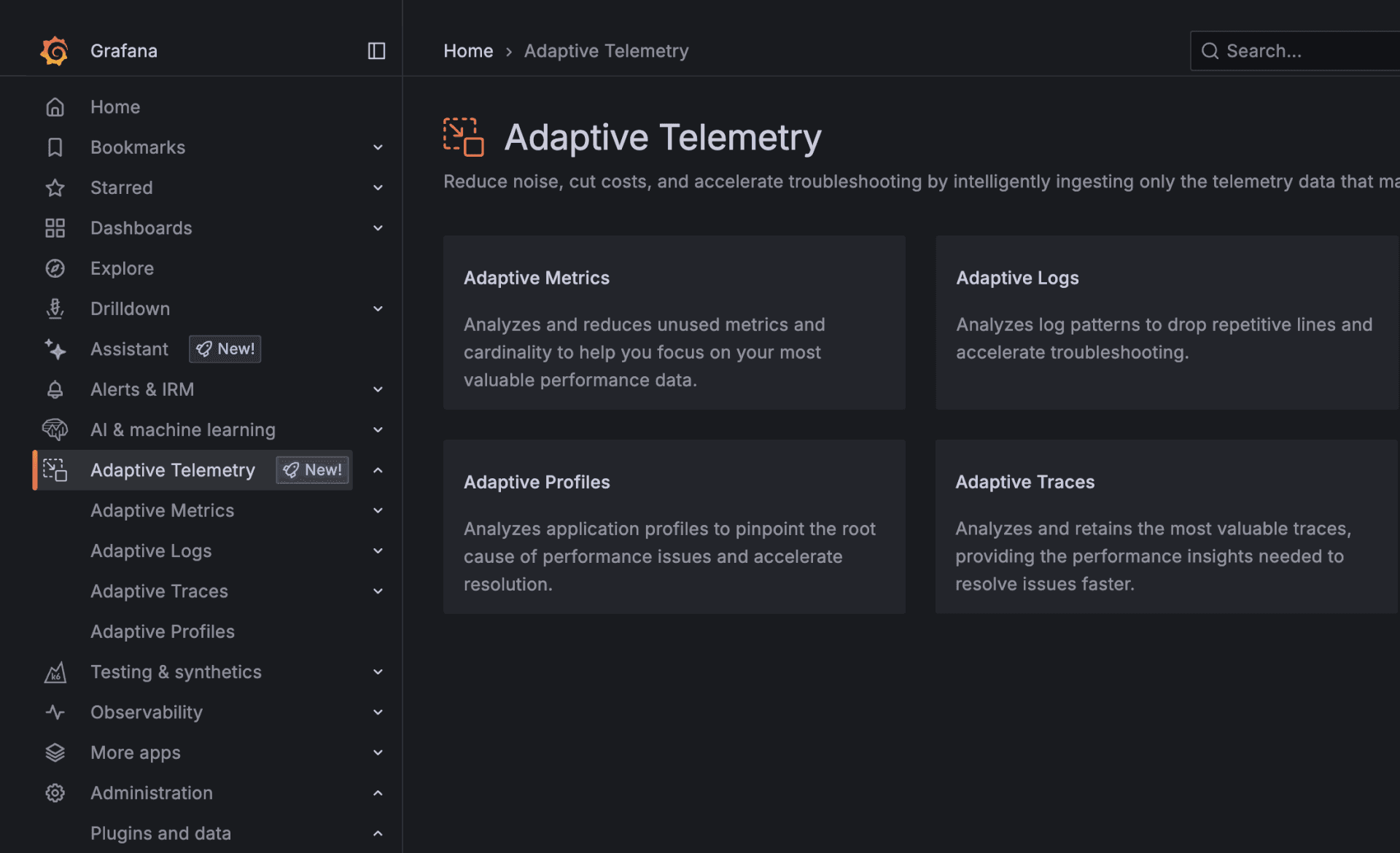Get Adaptive Telemetry in Grafana Cloud