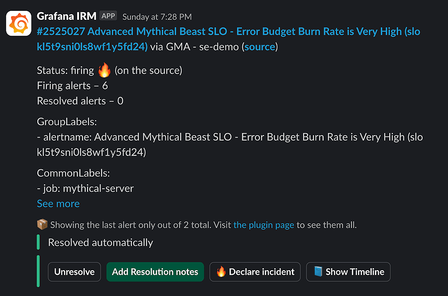 Stay in sync with your team by routing alerts to your preferred ChatOps and incident management tools. With built-in support for Grafana Cloud IRM, Slack, PagerDuty, Jira, and more, Grafana Alerting ensures notifications reach your team—not the other way around.