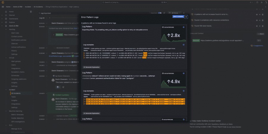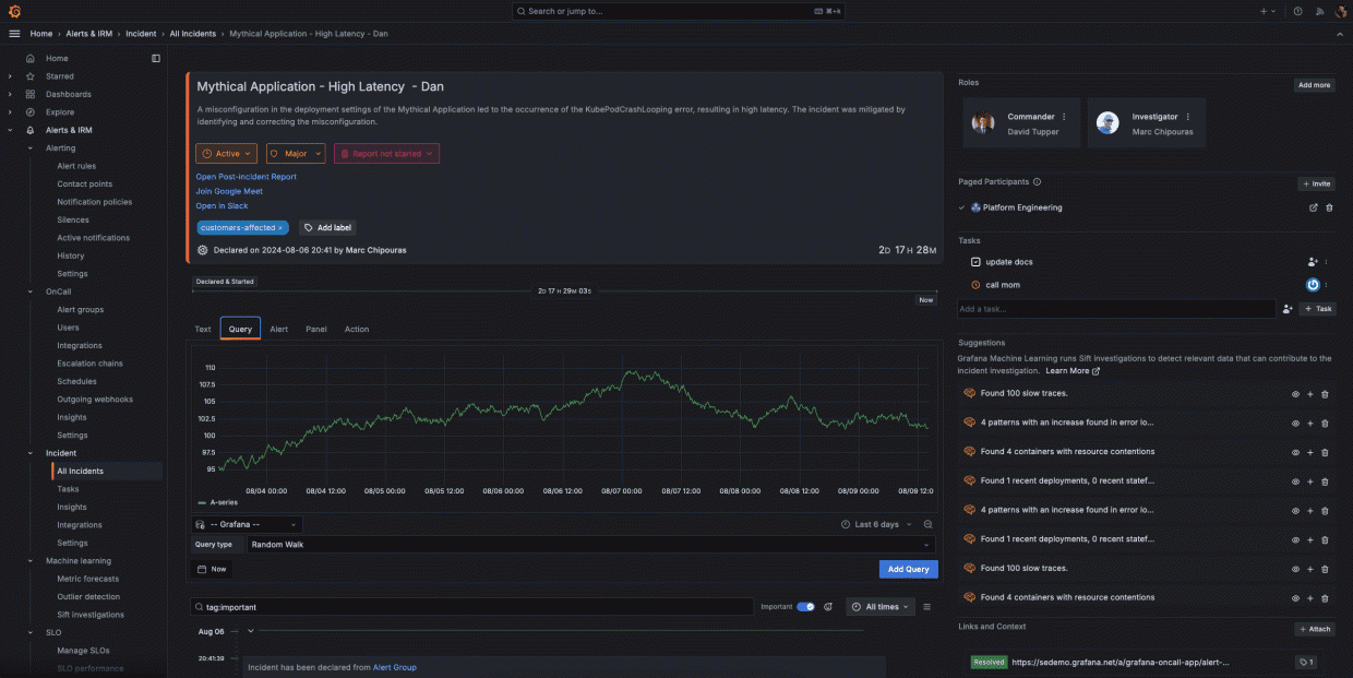 Incident, which is part of the Grafana Cloud IRM app, is an incident management tool that automates routine tasks so your team remains focused on resolving incidents (and improving on them) faster.