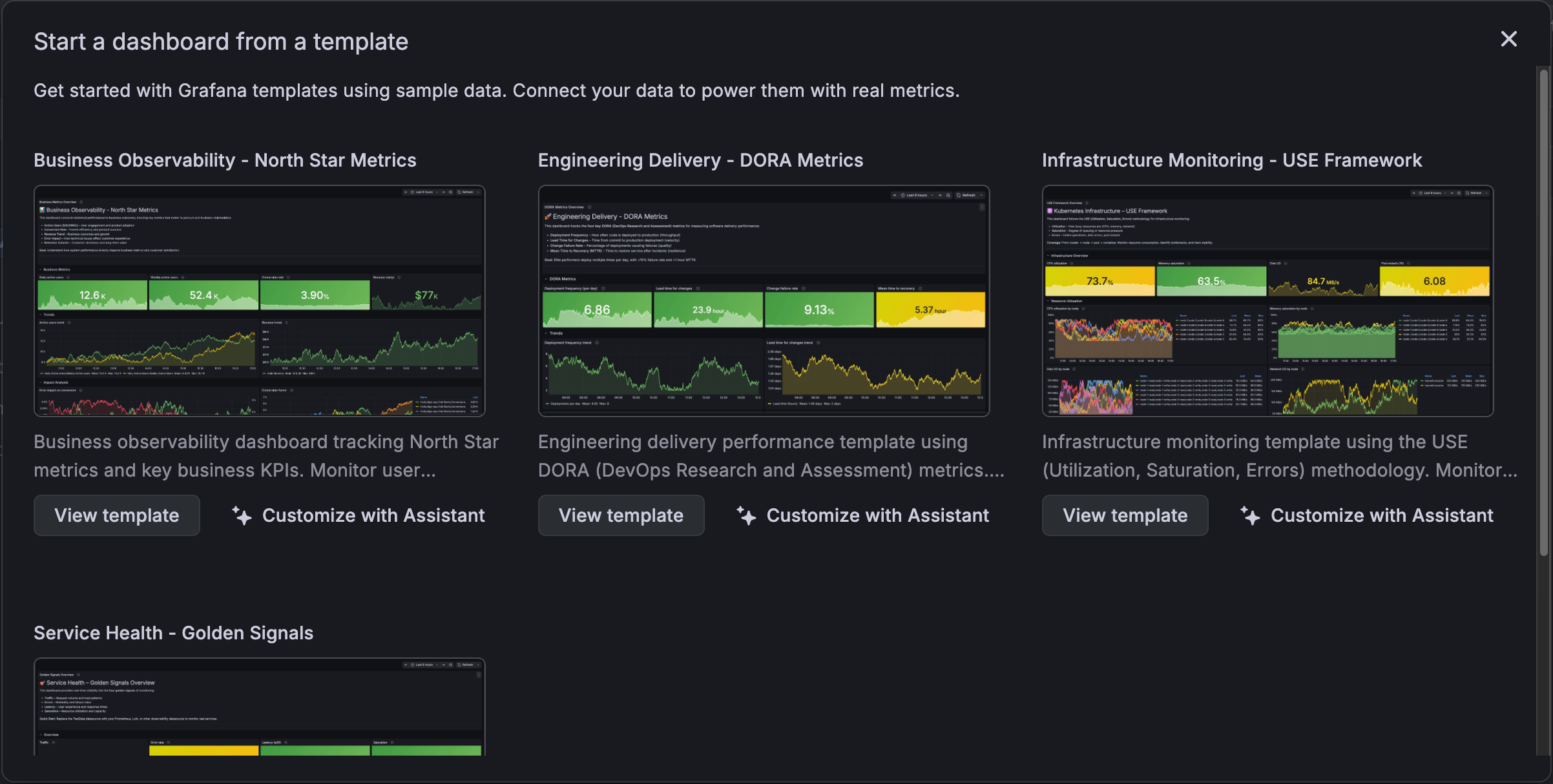 We’ve integrated Grafana Assistant into dashboard templates, so you can now ask the Assistant to help you with the process.