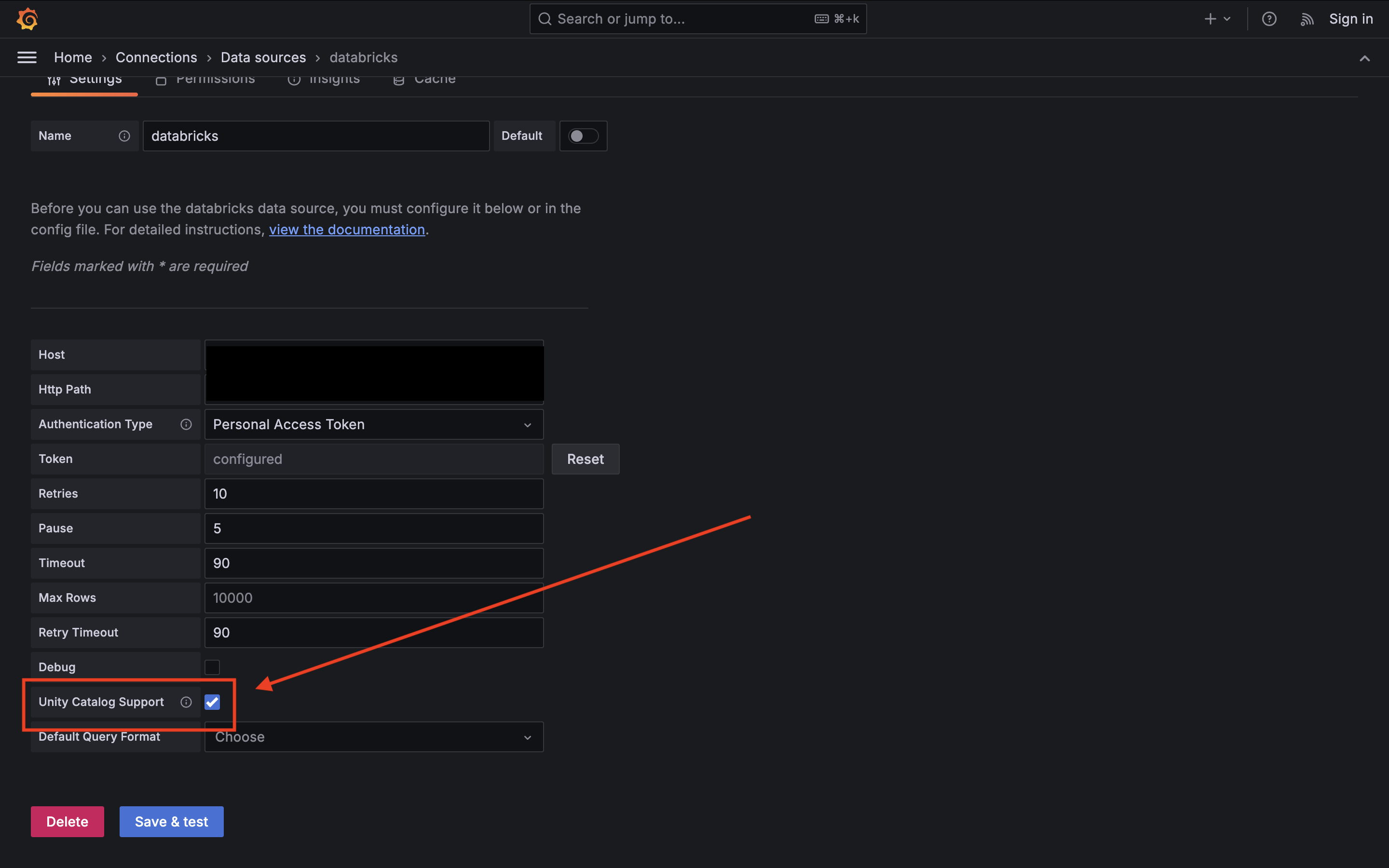 We’ve added support for Databricks Unity Catalog, enabling secure and consistent access to governed data directly within Grafana.