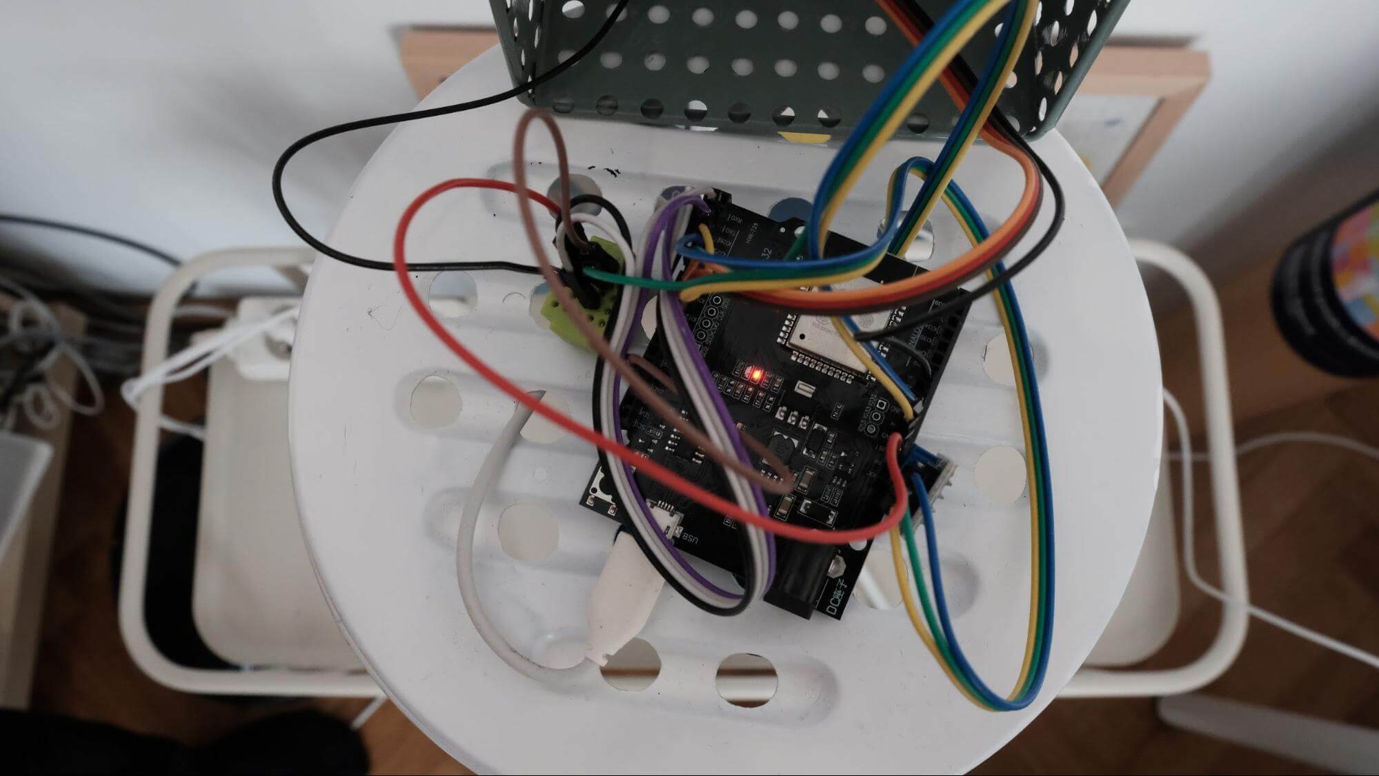 Now comes the last, handy part of the work. 👷♀️ I mounted my monitoring system on the plant stand using a glue gun, but feel free to improvise and design your own solution.