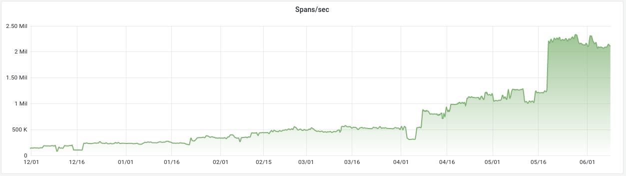 We announced Tempo at ObservabilityCON in October 2020. At the time, I was quite excited to announce our new distributed tracing project was consuming ~150k spans/second. It felt like such an accomplishment from our previous ~10k spans a second, but I suppose everything is relative.