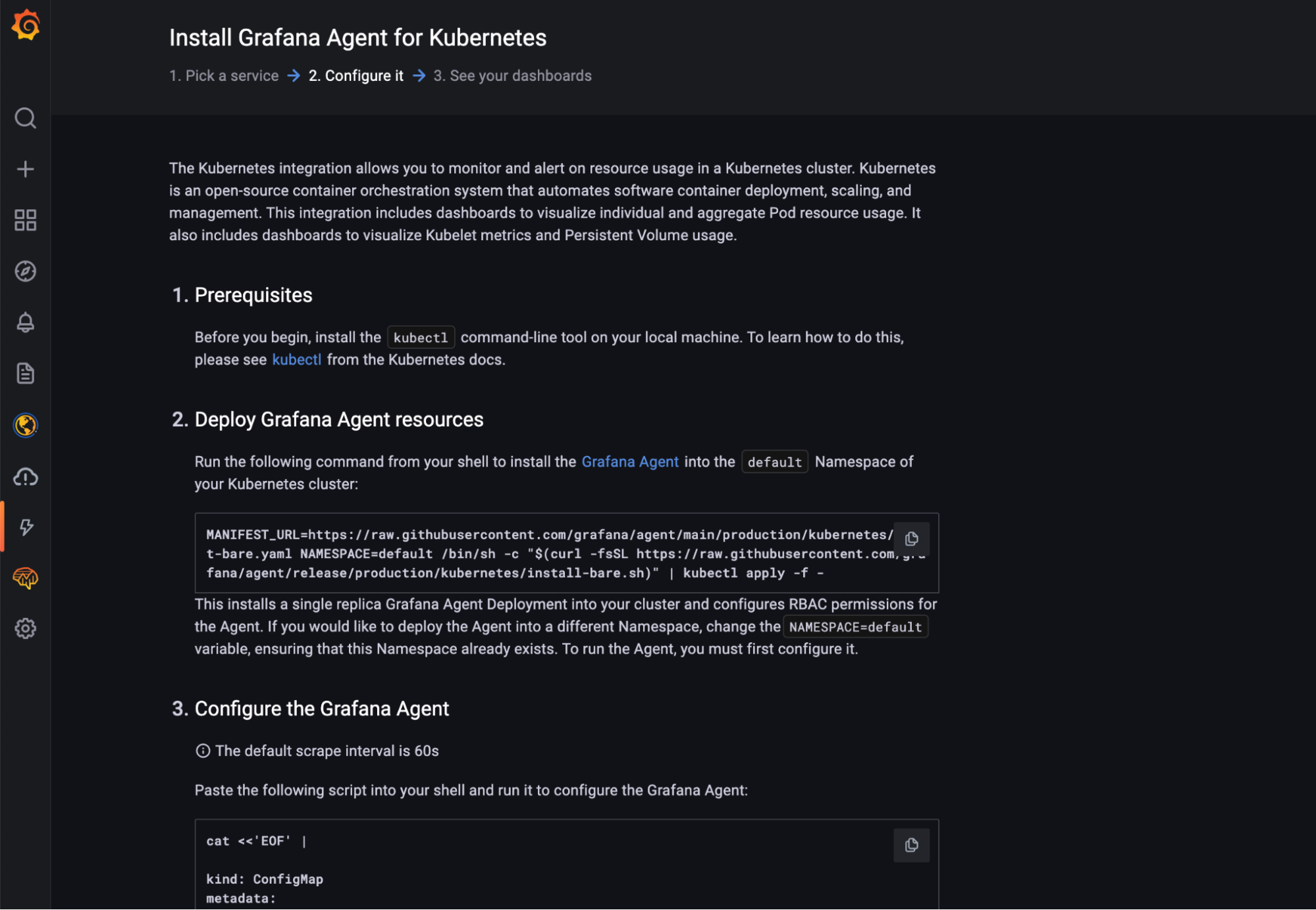 Users can now use the guided configuration through the integrations wizard which makes it easier to get started and includes Helm charts. There are also additional instructions for in-progress data sources and to create an allow-list for metric types. This is currently being done with manual edits to config snippet, but we hope to also make this easier in the future so stay tuned for even more configuration improvements