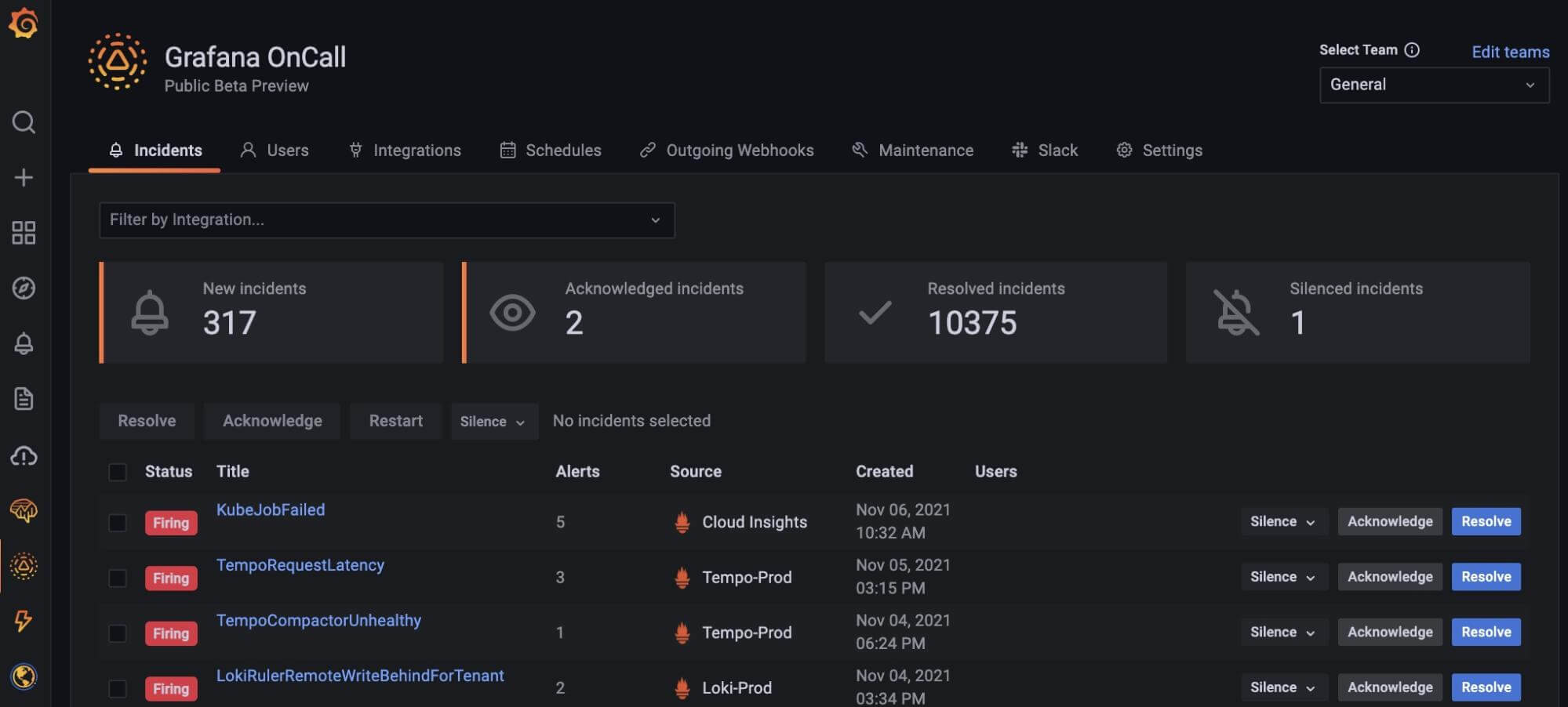 With Grafana OnCall, teams will no longer have to manage separate alerts from Grafana, Prometheus, and Alertmanager, lowering the risk of missing an important update while also limiting the time spent receiving and responding to notifications. OnCall is easily integrated into existing Grafana Cloud deployments, working with existing alerting sources and monitoring tools so that teams can get up and running quickly and easily.