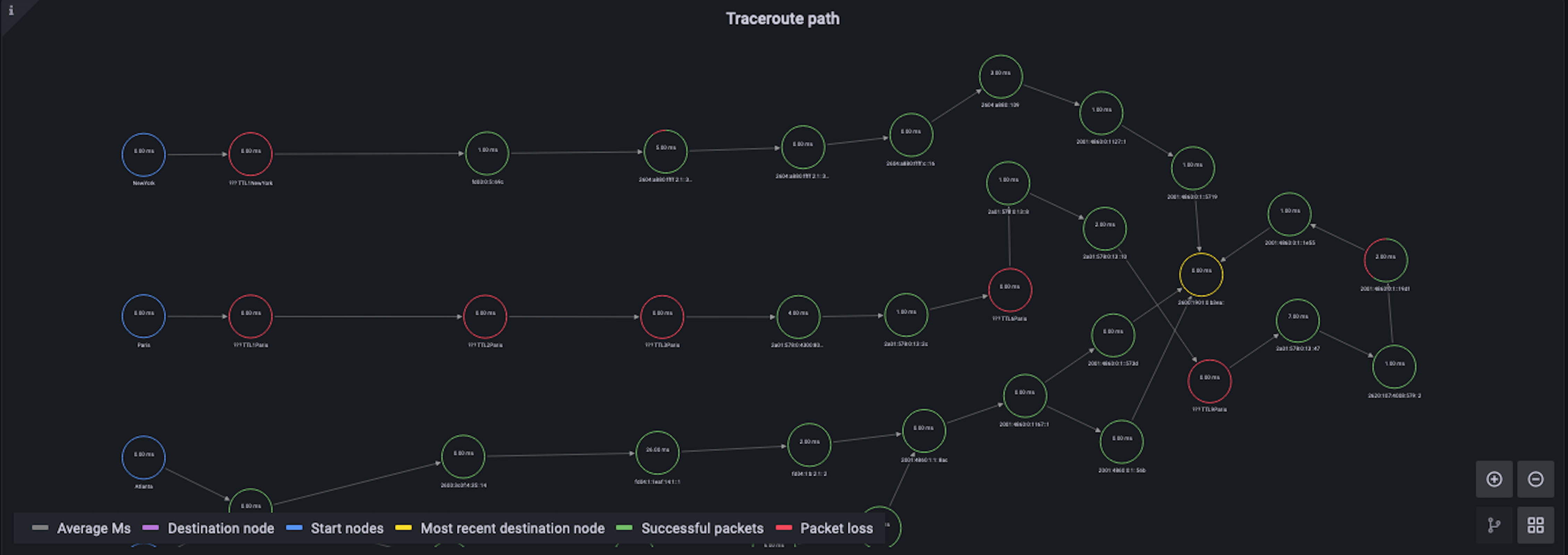 Enter a new type of Synthetic Monitoring check: traceroute. What this new feature does is trace the path of a request through the Internet, giving you a bit more information about where things might be having trouble between the client and the server. So now, with traceroute and Grafana Cloud, you’re able to do several things: