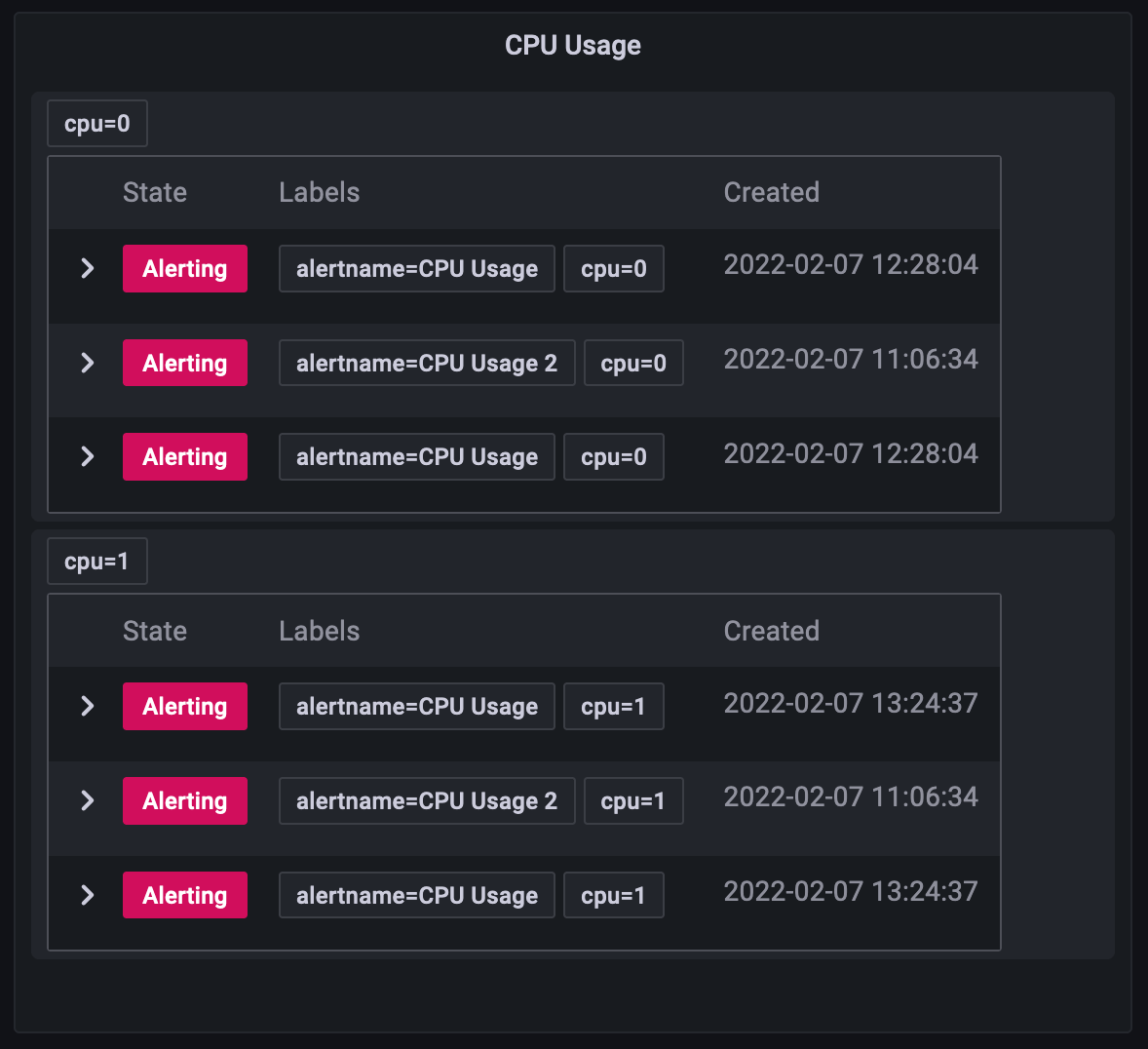 The new Alert Panel displays your alerts and associated alert instances, and it supports grouping by one or more custom labels. You can also display all alert instances in an ungrouped list by choosing the custom grouping mode without any configured labels.