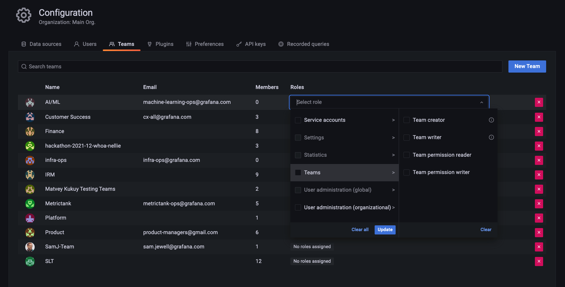 In 8.4, you can assign roles to teams, which apply to all members of that team. This is a convenient way to grant certain permissions to a group of users all at once. It also makes permissions easier to manage when you synchronize groups from an SSO provider, like Google Oauth or Okta, to teams in Grafana.