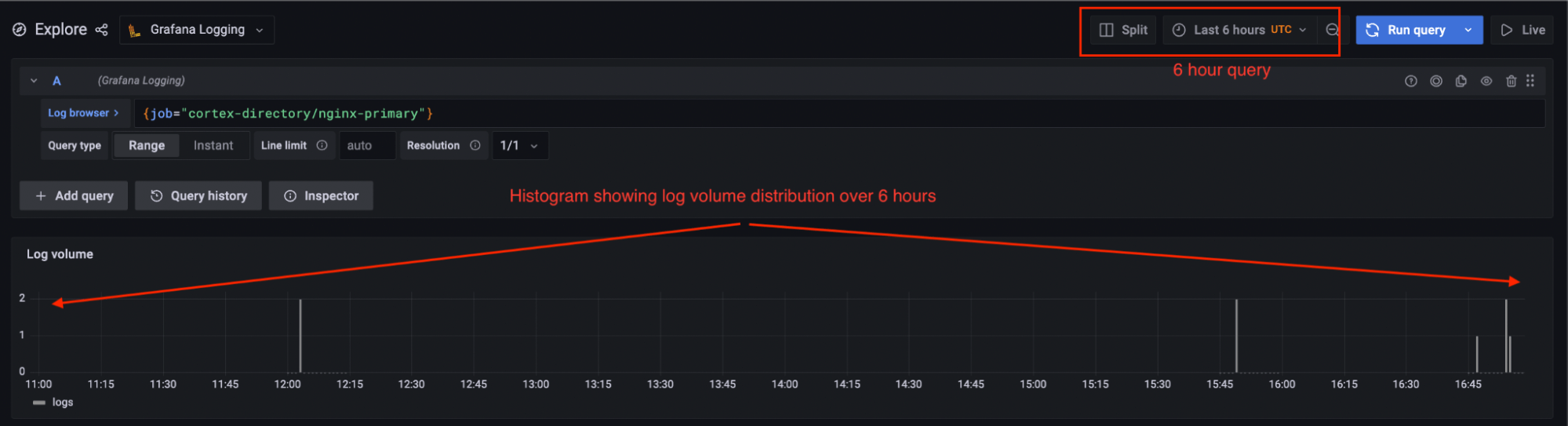 In Grafana 8.4, we’ve enabled the full-range log volume histogram for the Grafana Loki data source by default. Those using Explore to query Loki will now see a histogram that reflects the distribution of log lines over their selected time range. Previously, the histogram would only show the histogram over whatever time range the first 1,000 returned lines fell within.